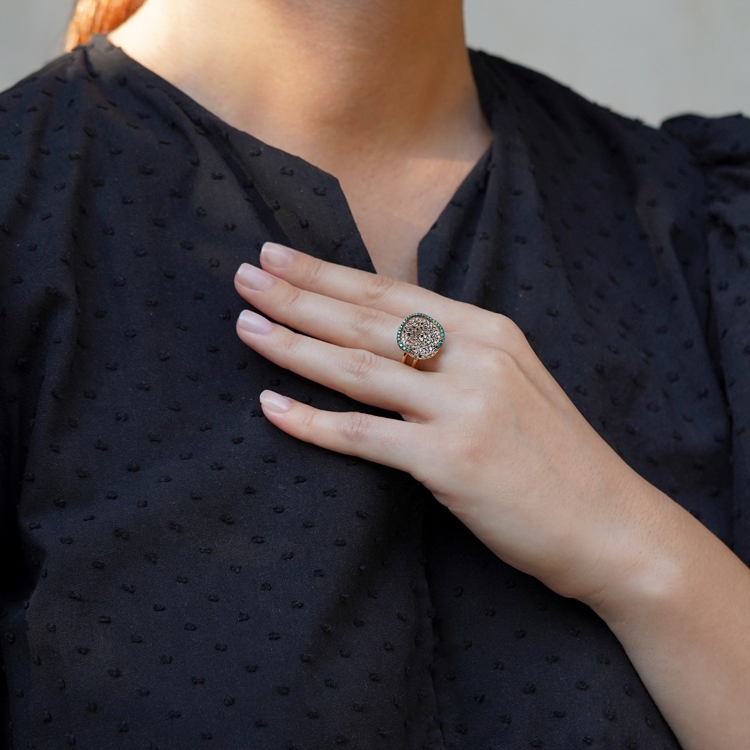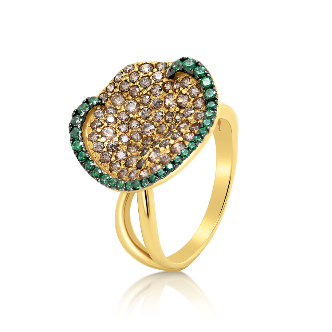 Inel din aur galben de 14K cu pietre zirconia colorate.
