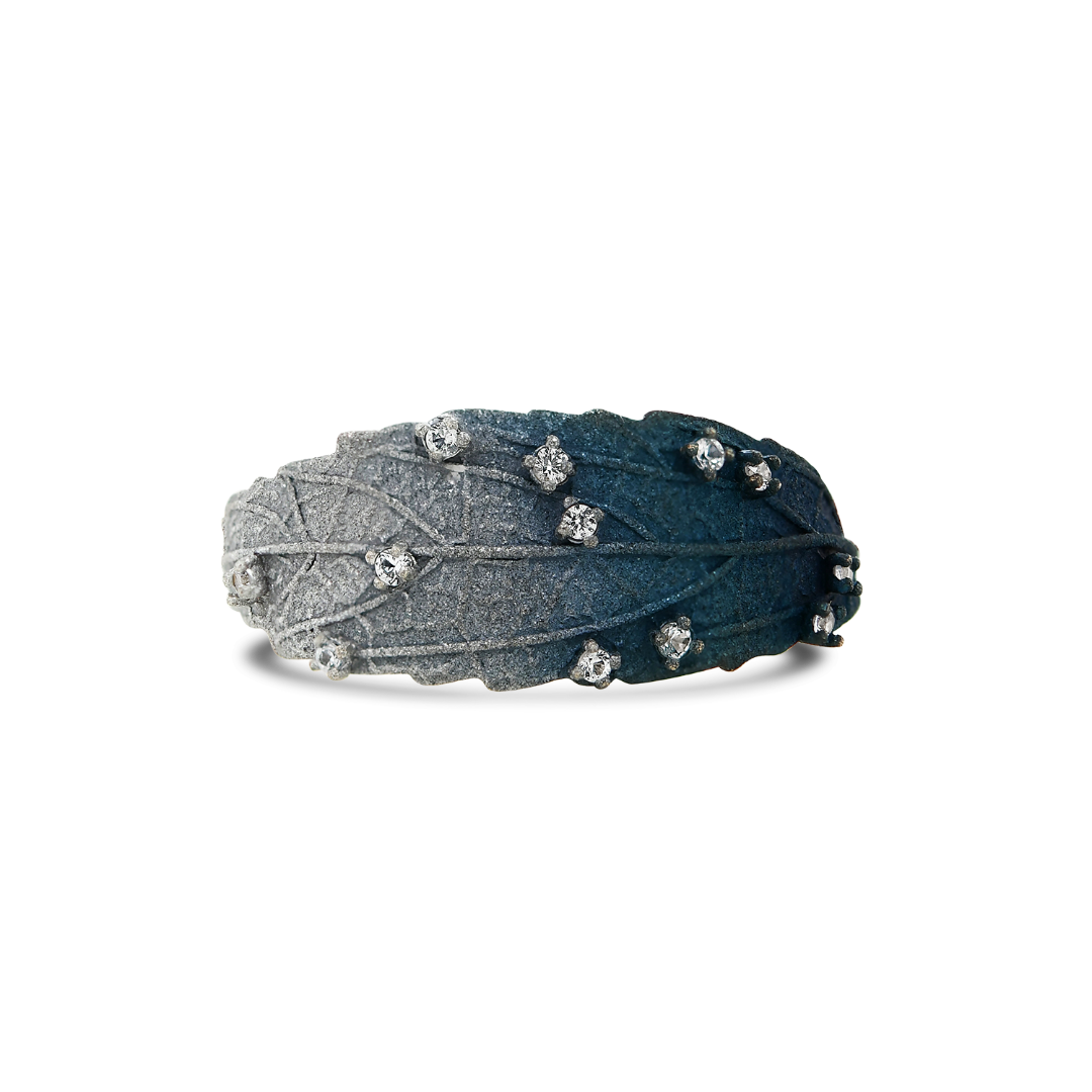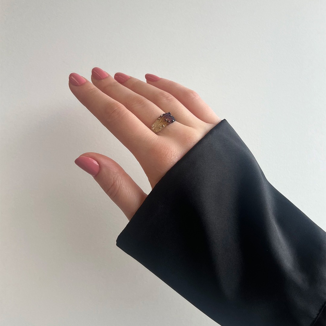 Inel cu efect sidefat din aur galben de 14K cu Safire incolore de 0.06ct.