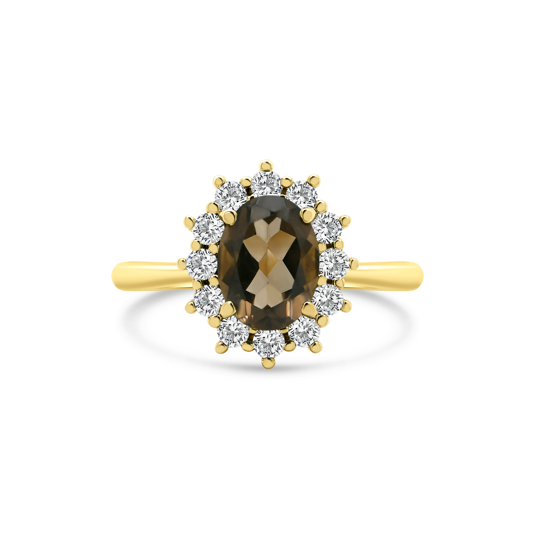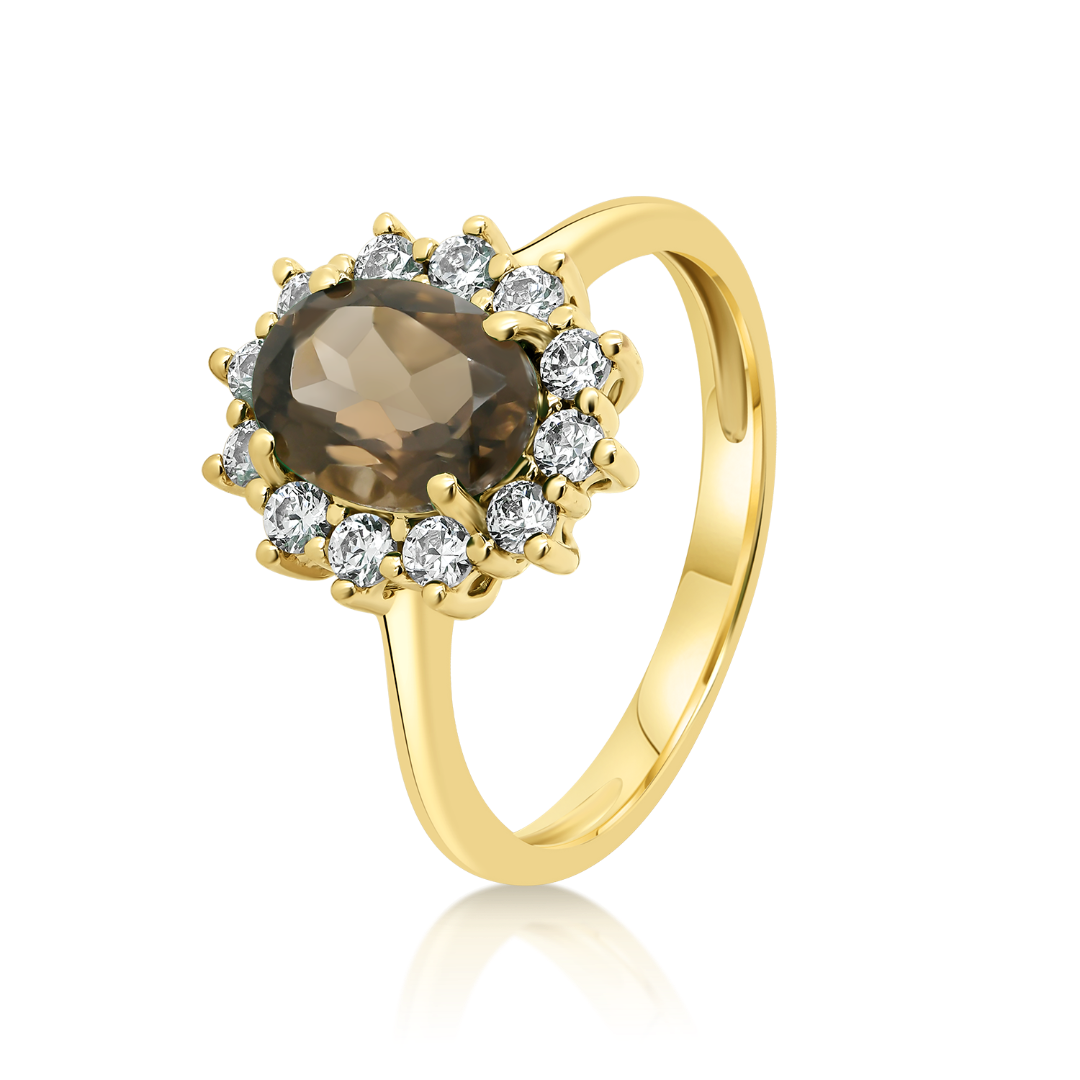 Inel din aur galben de 14K cu Smoky Quartz și cubic zirconia.