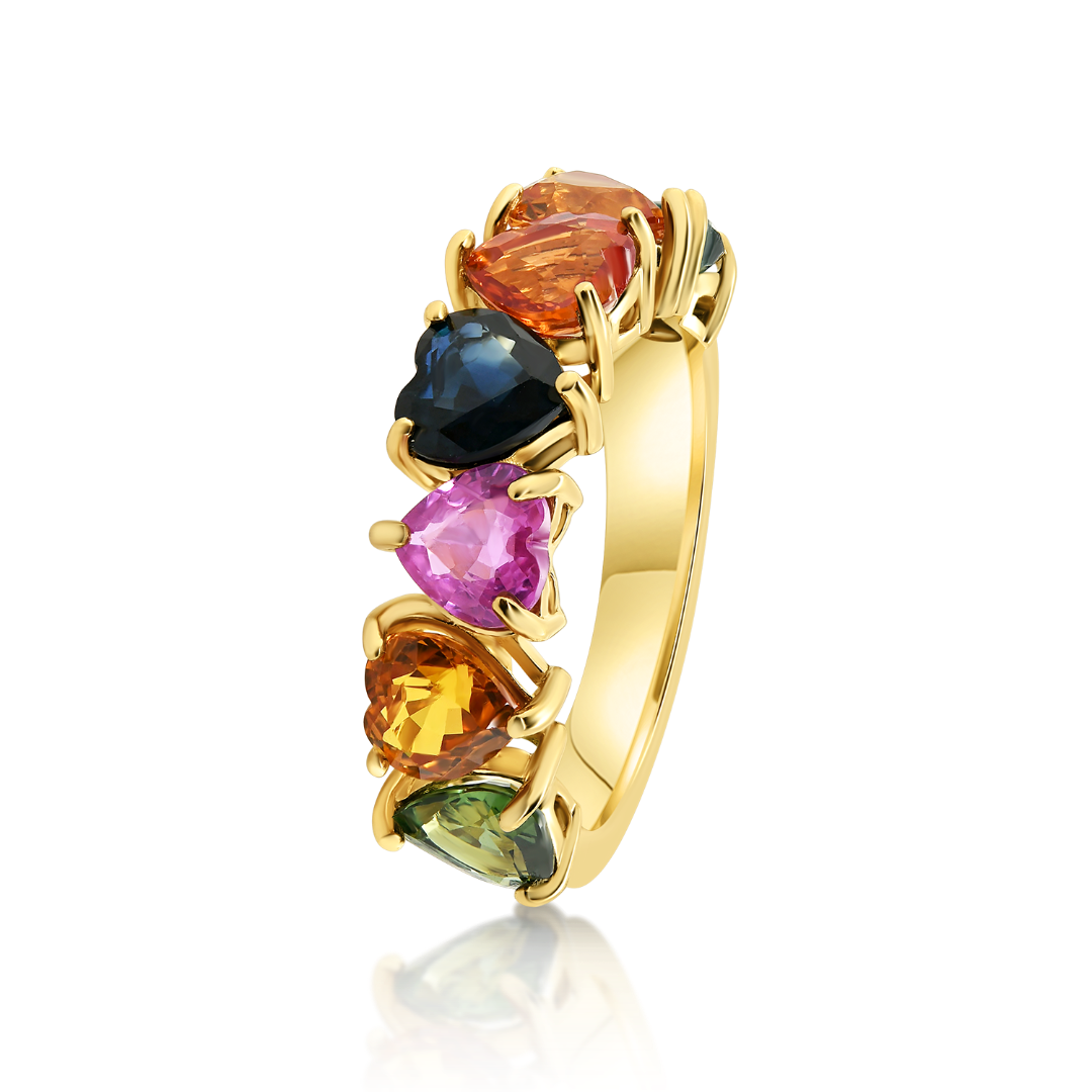 Inel din aur galben de 18K cu 7 Safire colorate de 4.11ct.