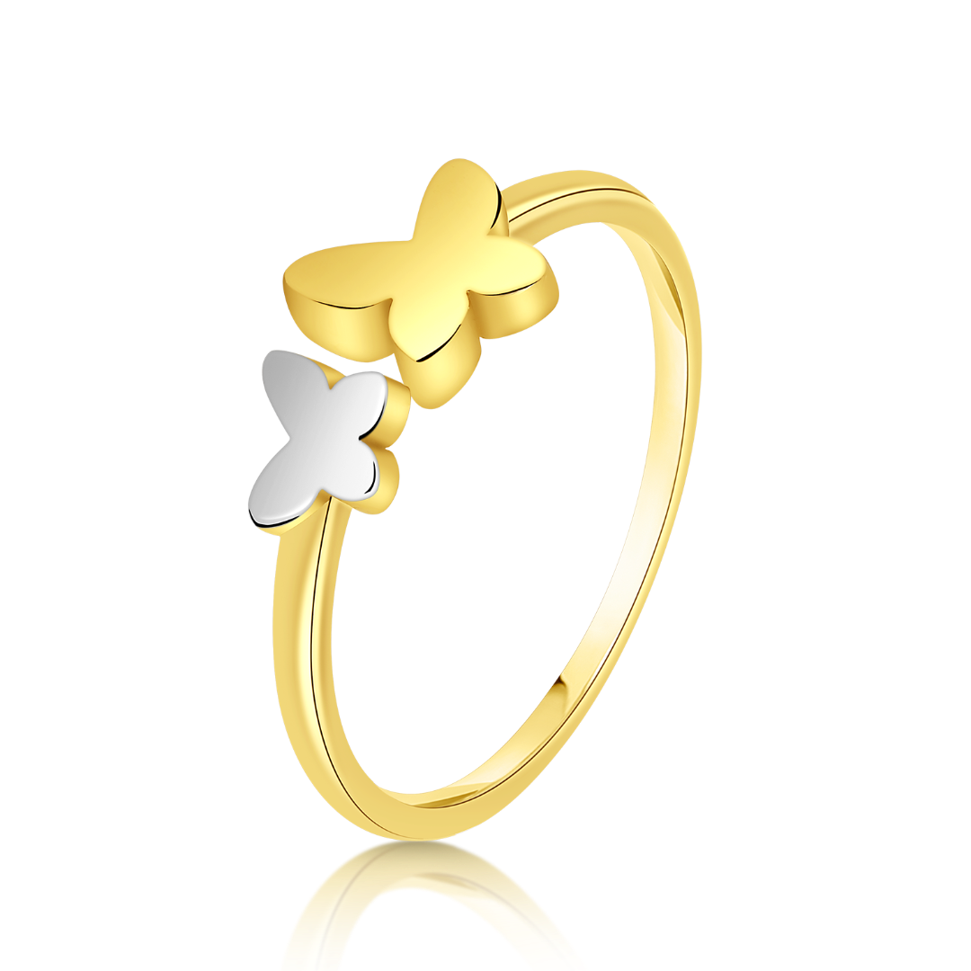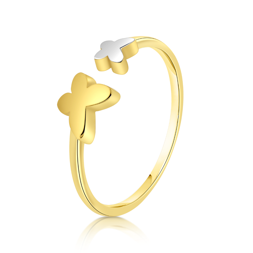 Inel din aur galben de 14K cu elemente în formă de fluture.