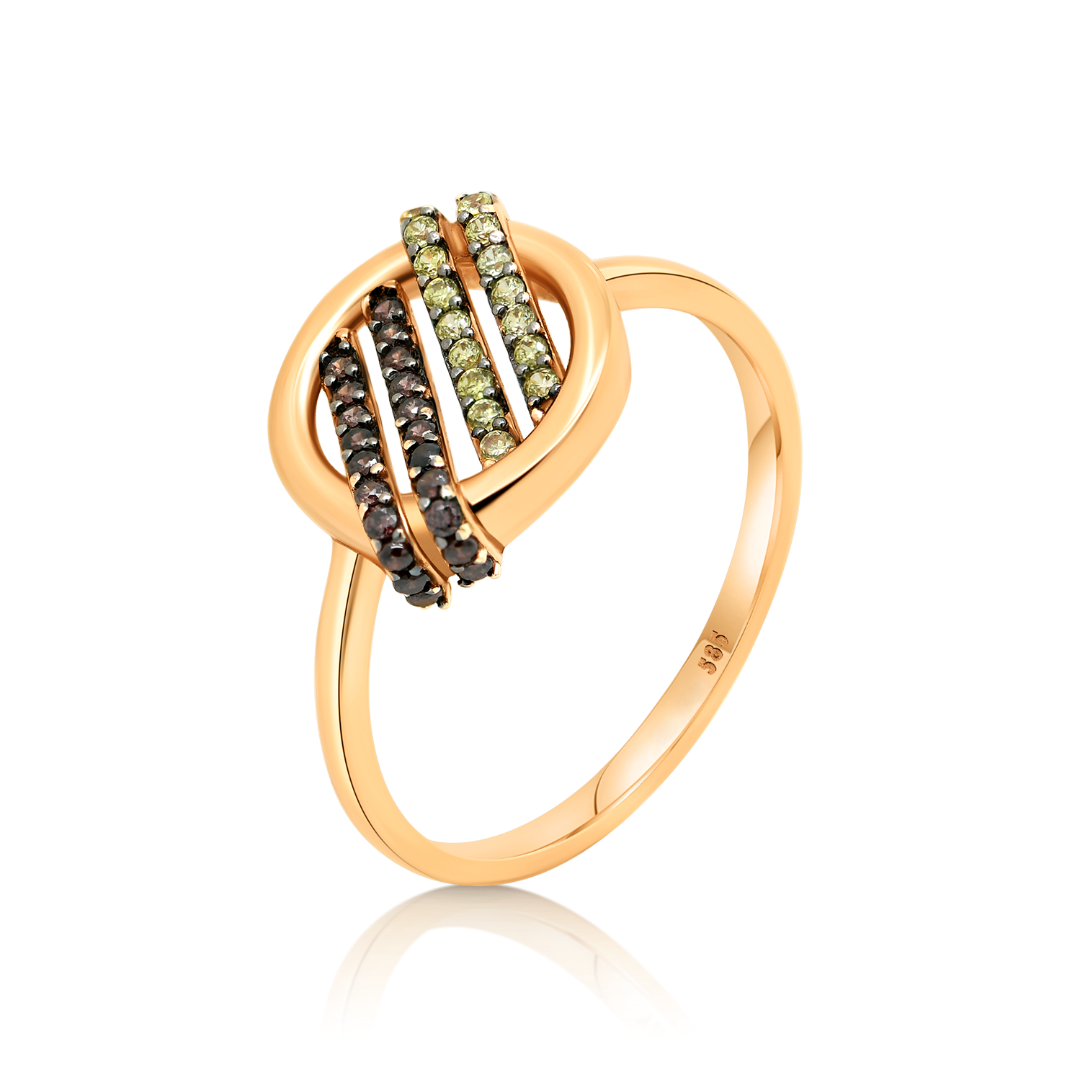 Inel din aur roz de 14K cu pietre cubic zirconia colorate.
