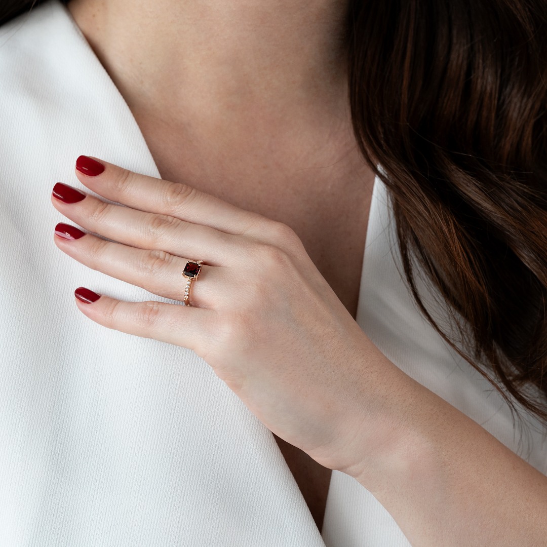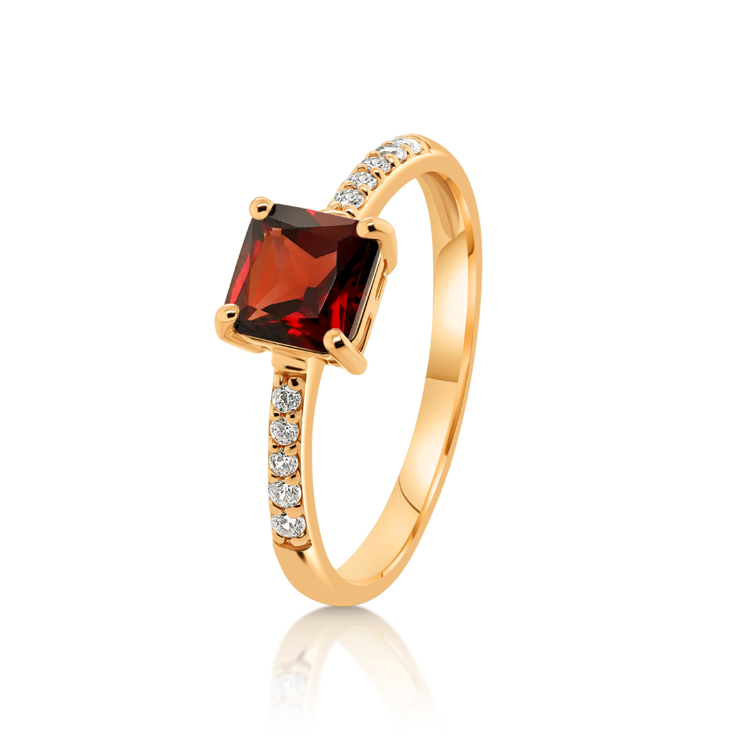 Inel din aur roz de 14K cu Granat și zirconii incolore.