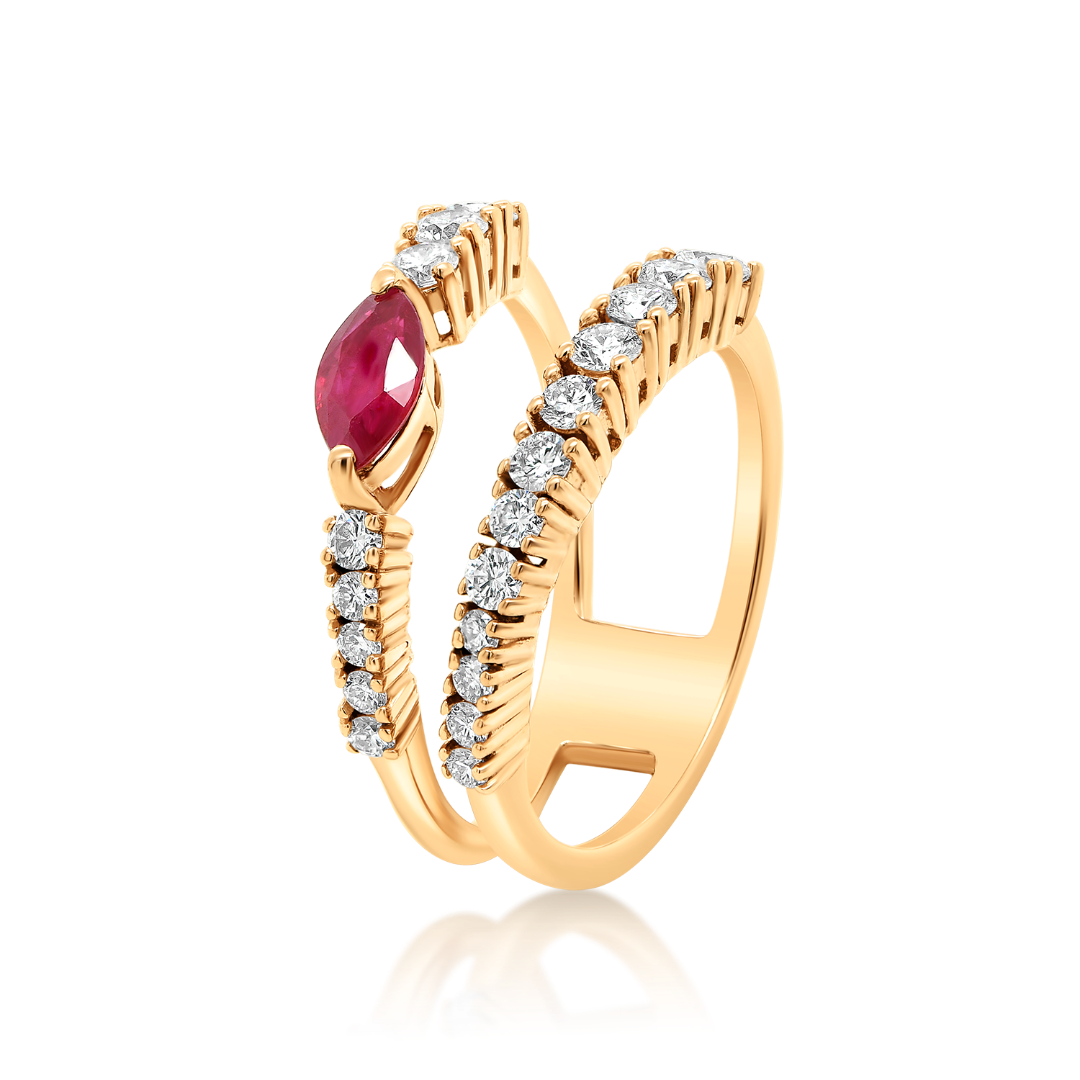 Inel din aur roz de 18K, cu 20 de Diamante naturale Round Brilliant de 0.691ct și un Rubin de 0.47ct.