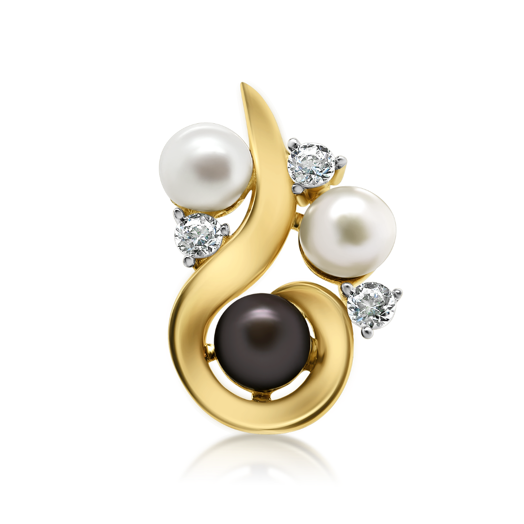 Pandantiv din aur galben de 14K , cu Perle colorate și pietre Cubic Zirconia.
