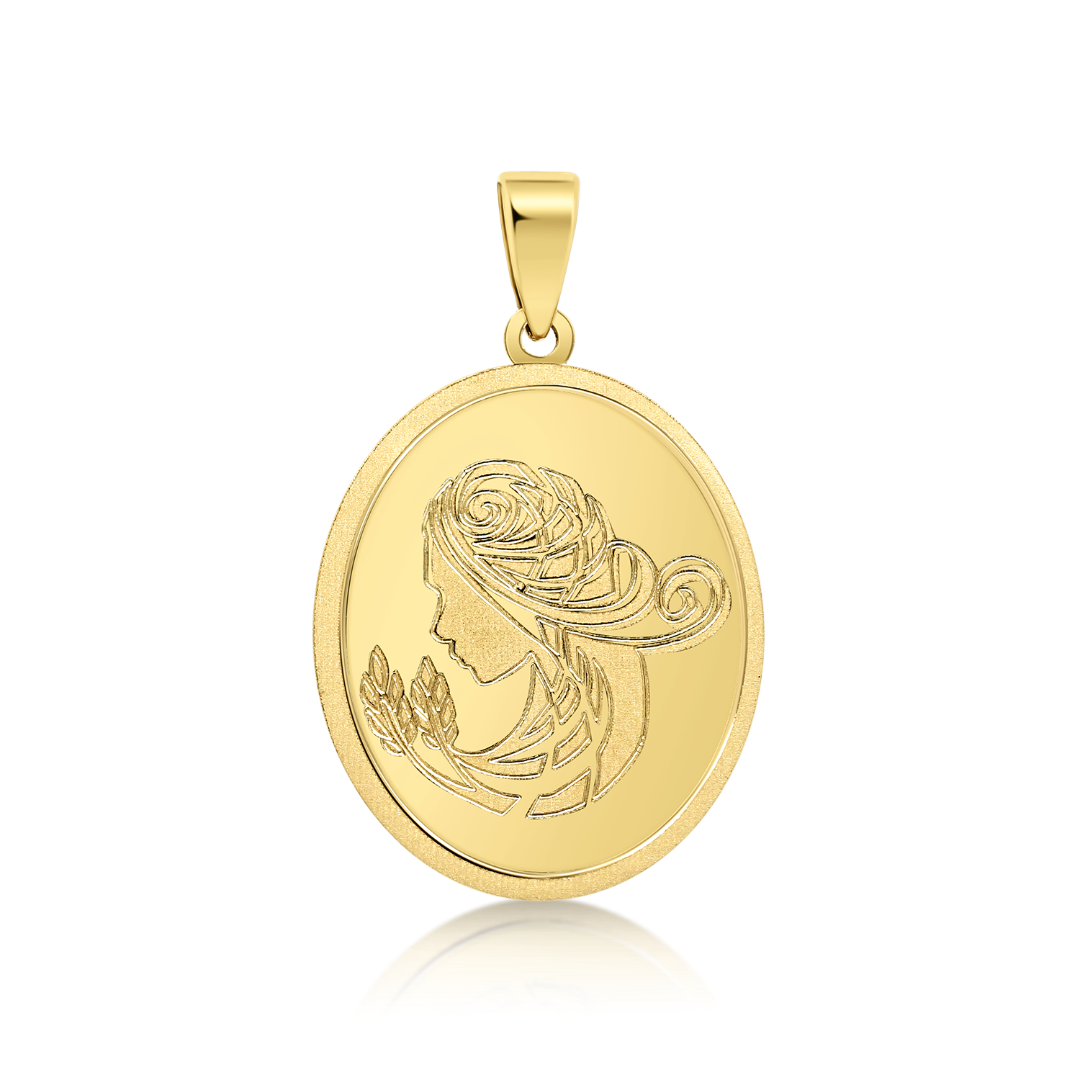 Pandantiv din aur galben de 14K cu semnul zodiacal FECIOARĂ.