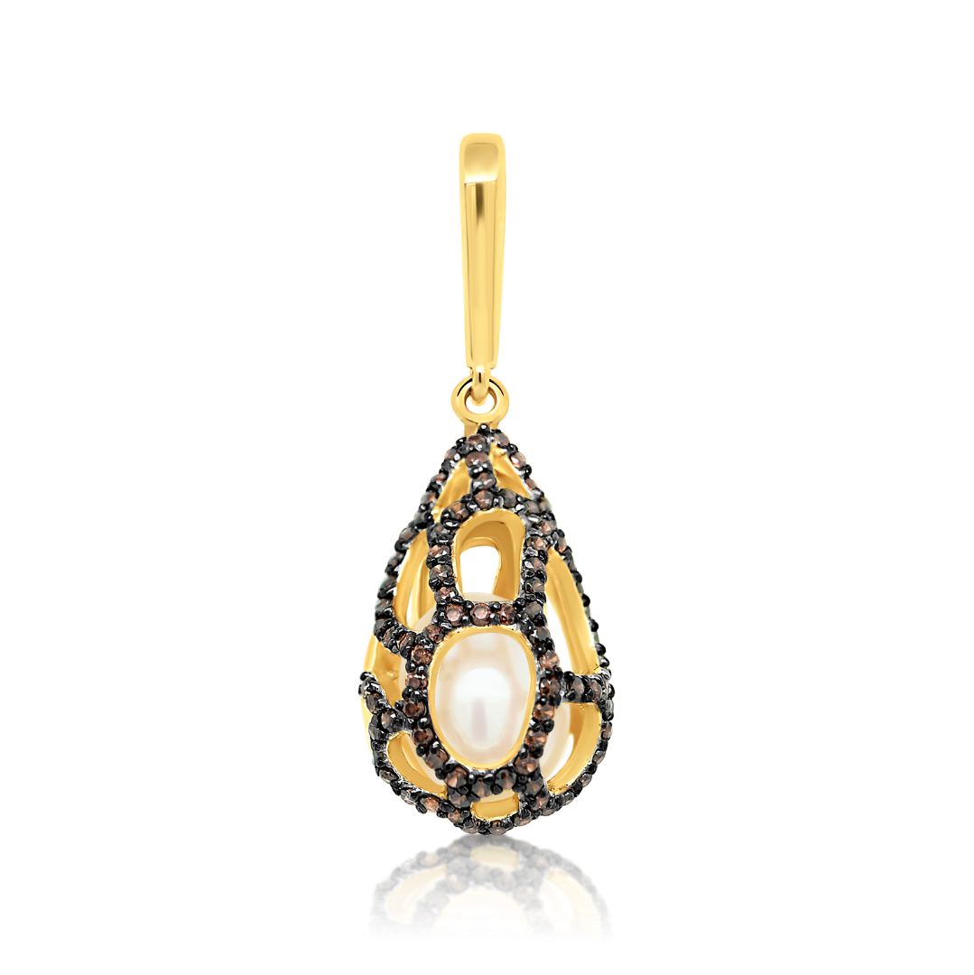 Pandantiv din aur galben de 14K cu Perlă și pietre Cubic Zirconia.