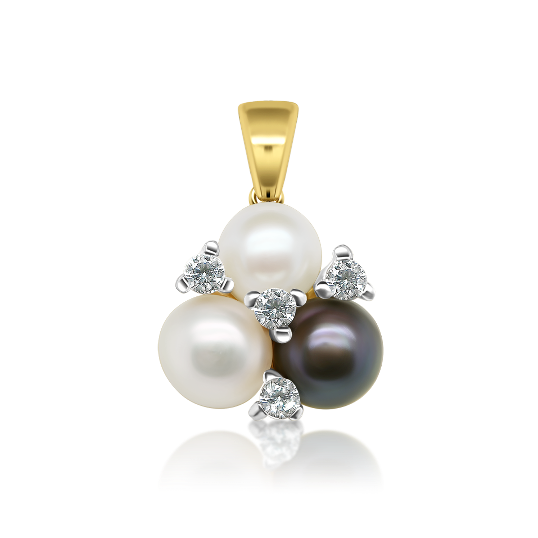Pandantiv din aur galben de 14K, cu Perle colorate și pietre Cubic Zirconia.