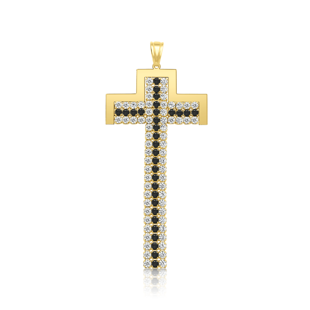 Pandantiv cu design flexibil din aur galben de 14K și pietre cubic zirconia albe și negre.
