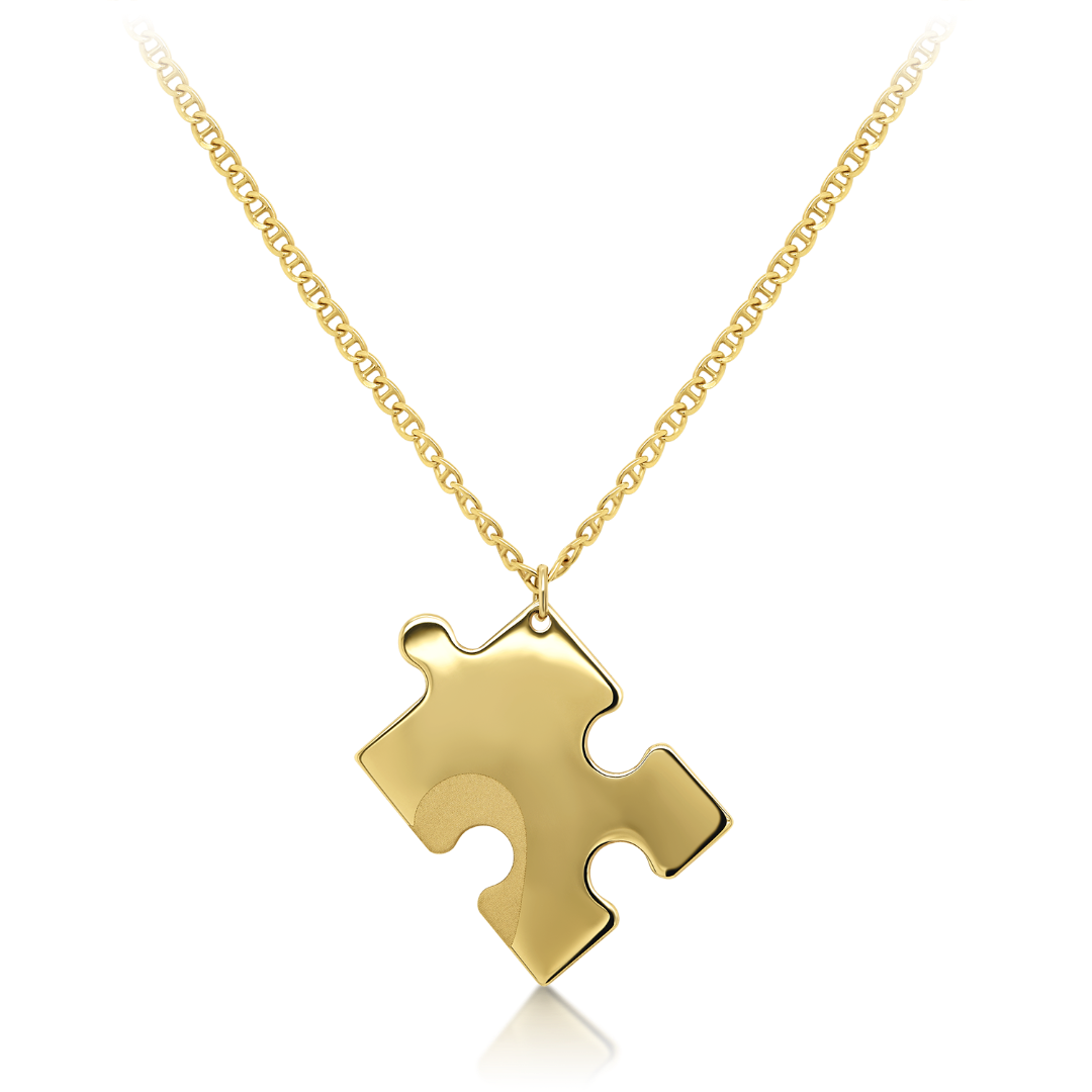 Pandantiv PENTRU EL din aur galben de 14K cu element mat. Inima este completă prin alăturarea celor două piese de puzzle.