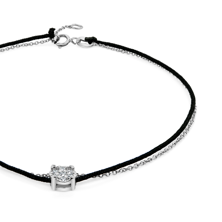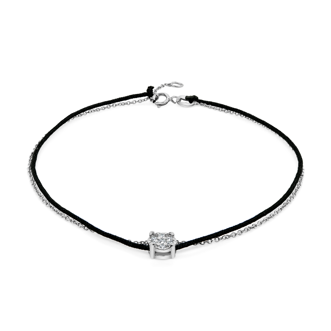 Brățară din aur alb de 18K cu șnur negru și 7 Diamante naturale Round Brilliant.