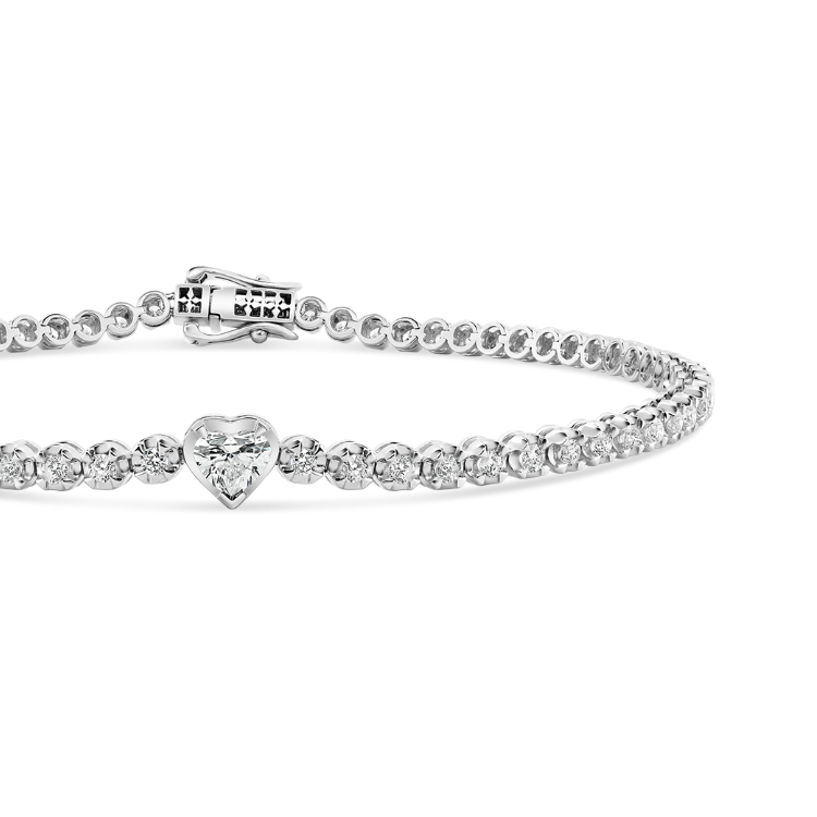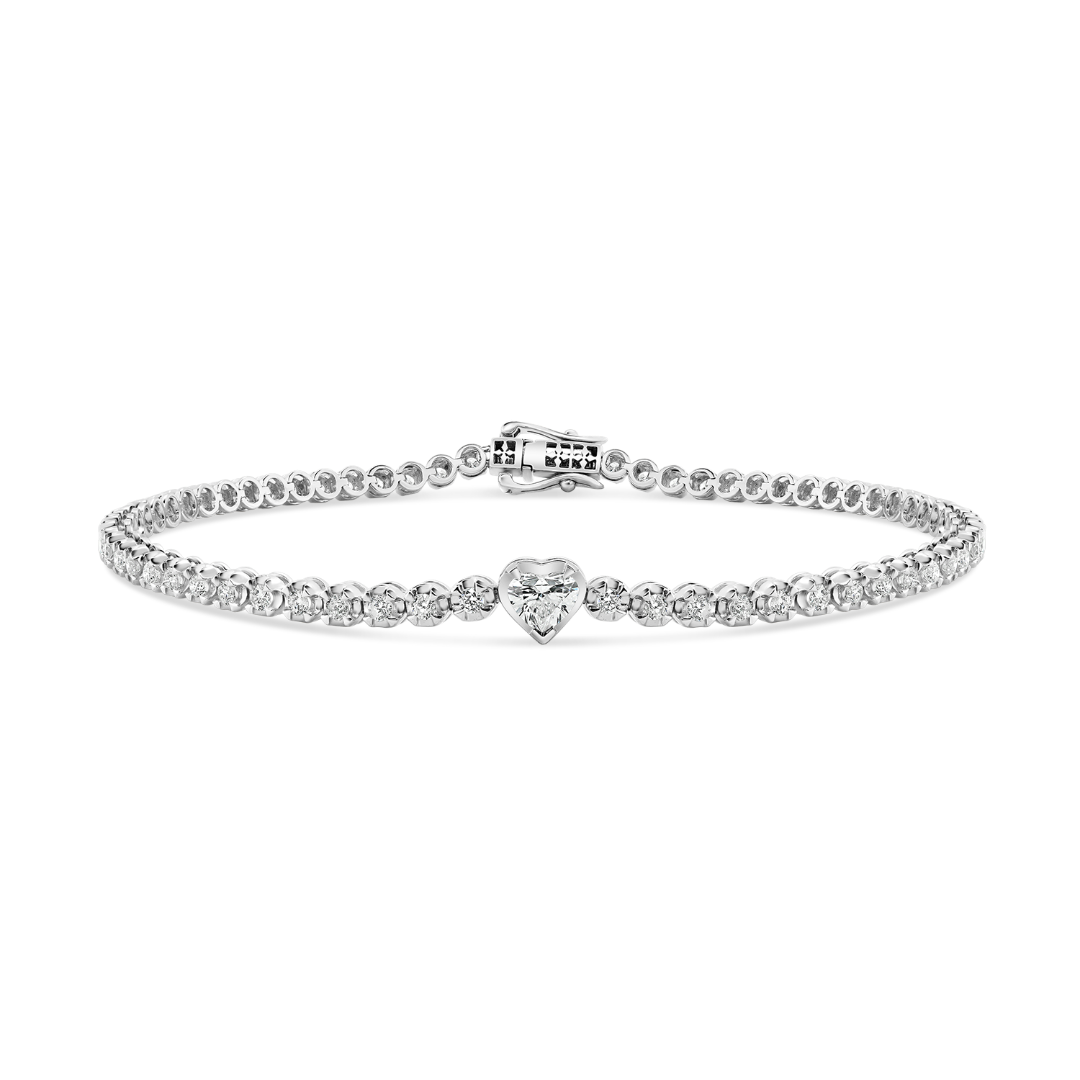 Brățară din aur alb de 18K, încrustată central cu un Diamant Heart de 0.19ct și 66 de Diamante Round Brilliant de 0.97ct.
