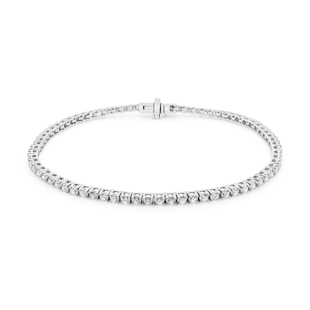 Brățară Tennis din aur alb de 18K încrustată cu Diamante naturale Round Brilliant.