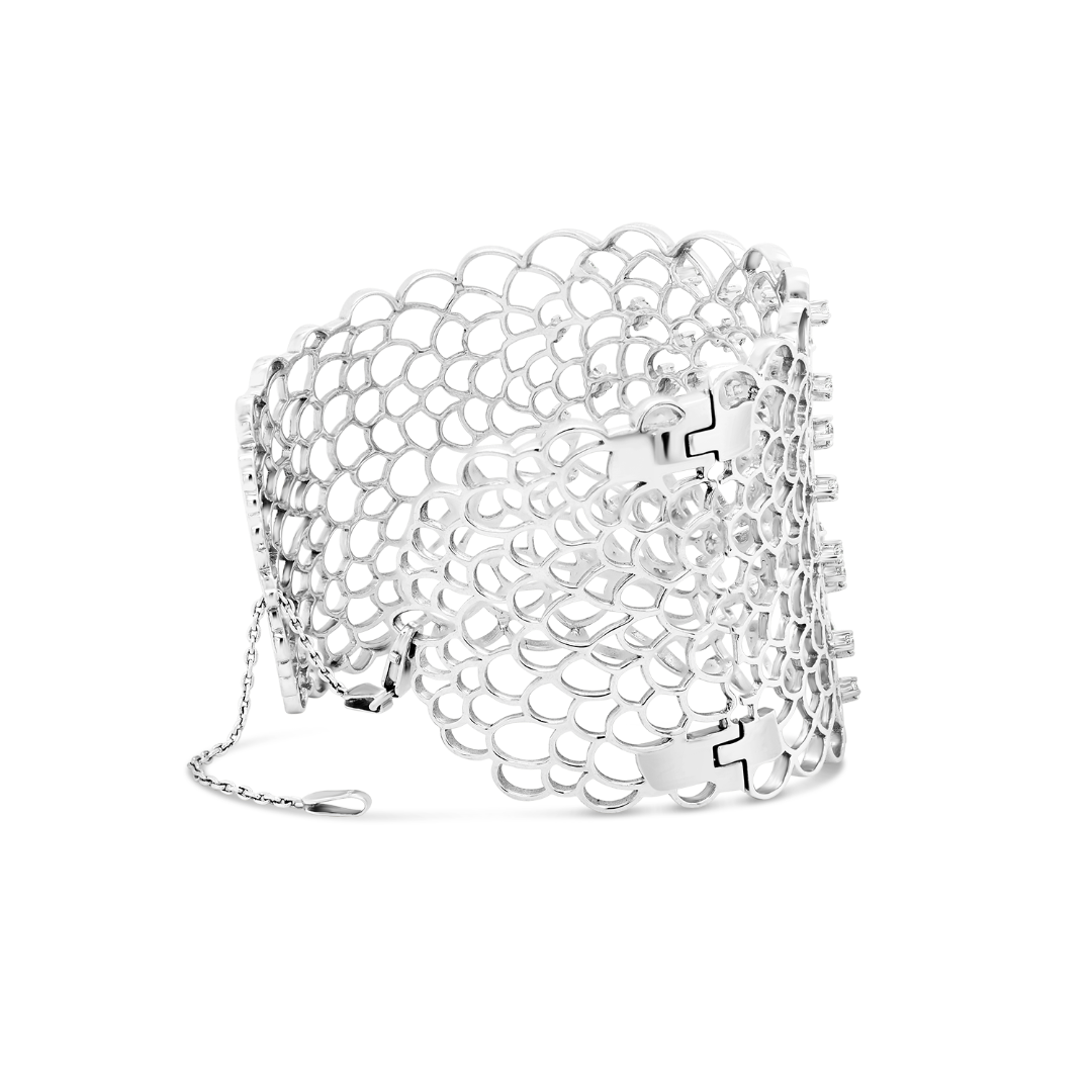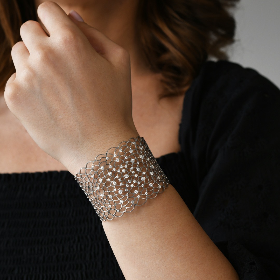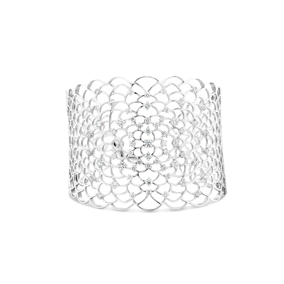 Brățară fixă din aur alb de 18K încrustată cu Diamante naturale Round Brilliant de 2.15ct.