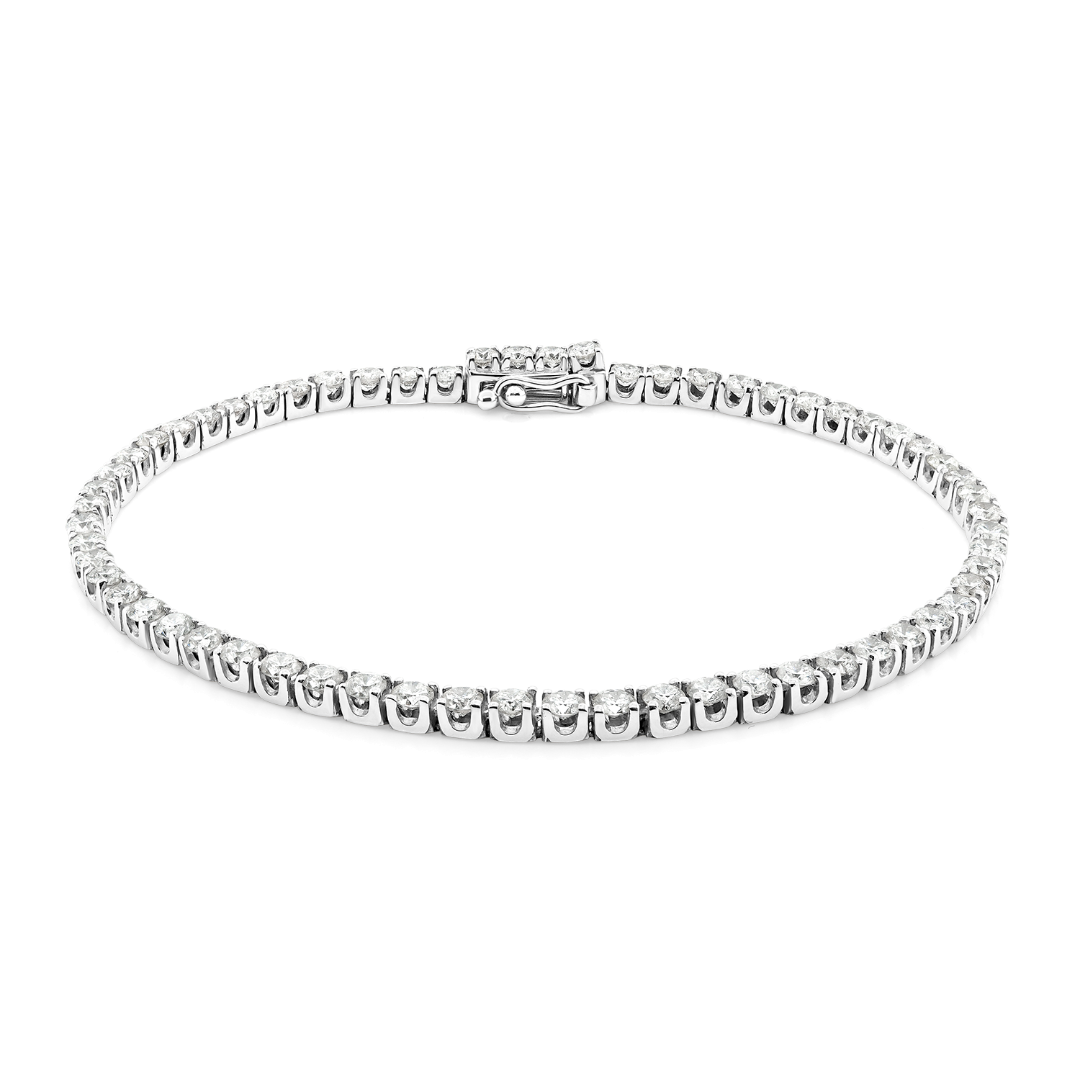 Brățară Tennis din aur alb de 18K, încrustată cu Diamante Round Brilliant cu o greutate totală de 3.0ct.