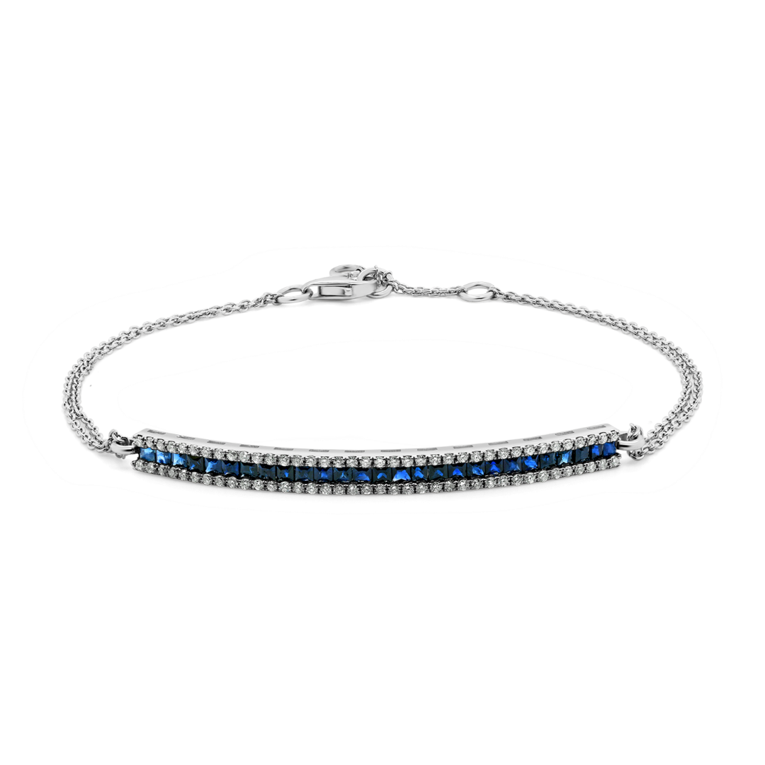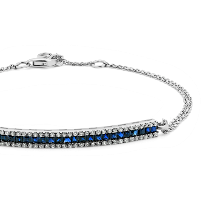 Brățară cu lanț dublu din aur alb de 18K, încrustată cu Diamante Round Brilliant de 0.30ct. și Safire albastre cu o greutate totală de 0.78ct.