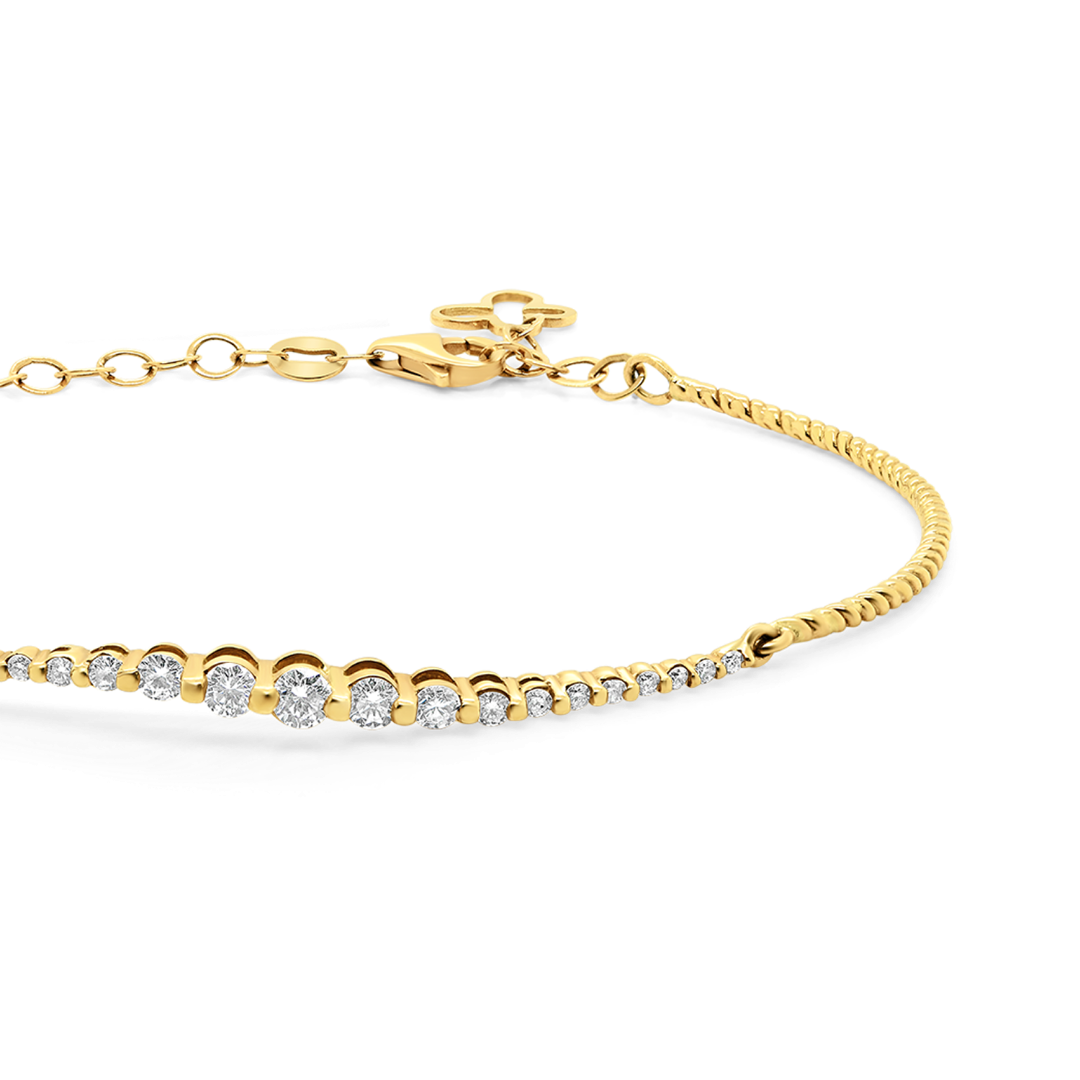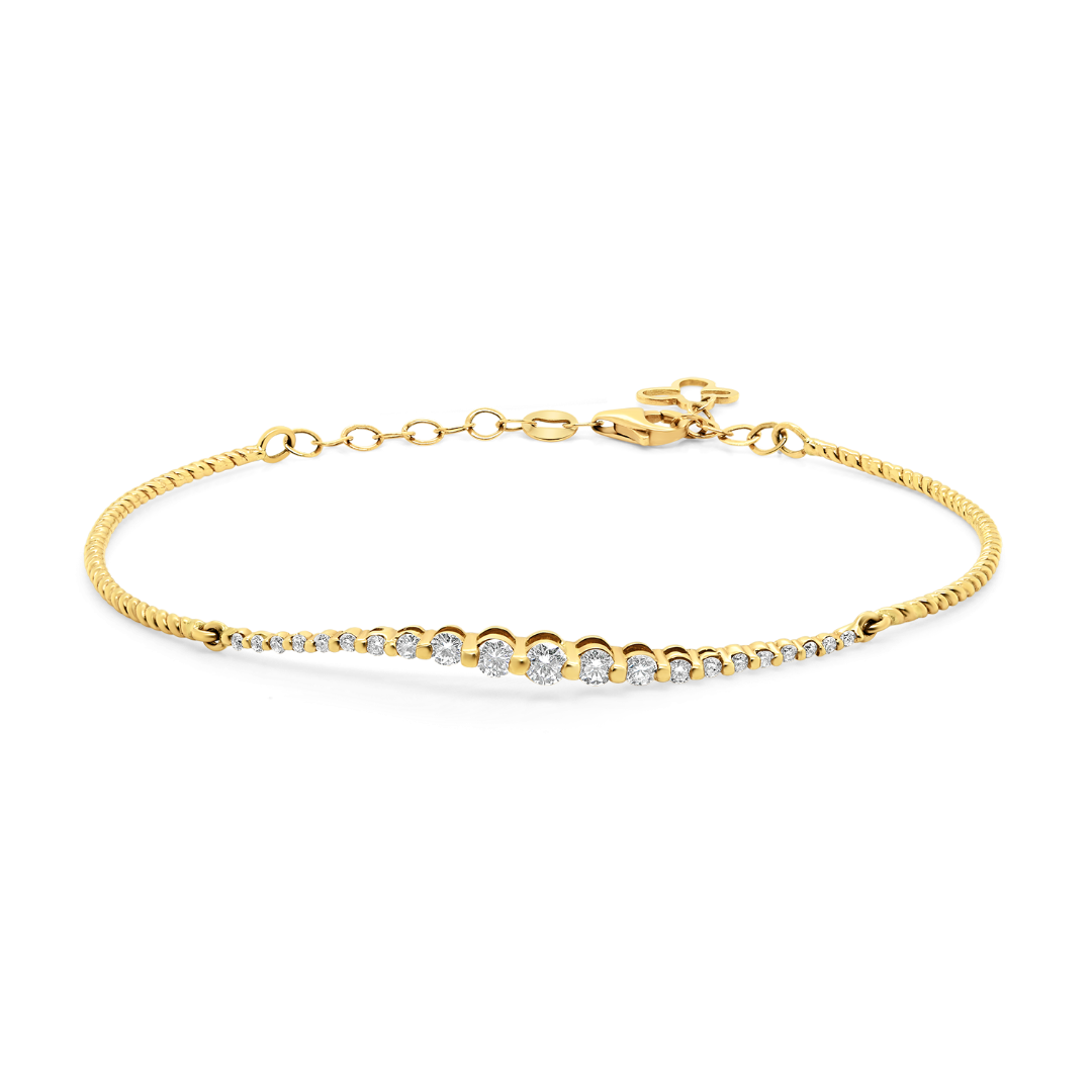 Brățară din aur galben de 18K, cu elemente fixe împletite și Diamante naturale Round Brilliant de 0.43ct.