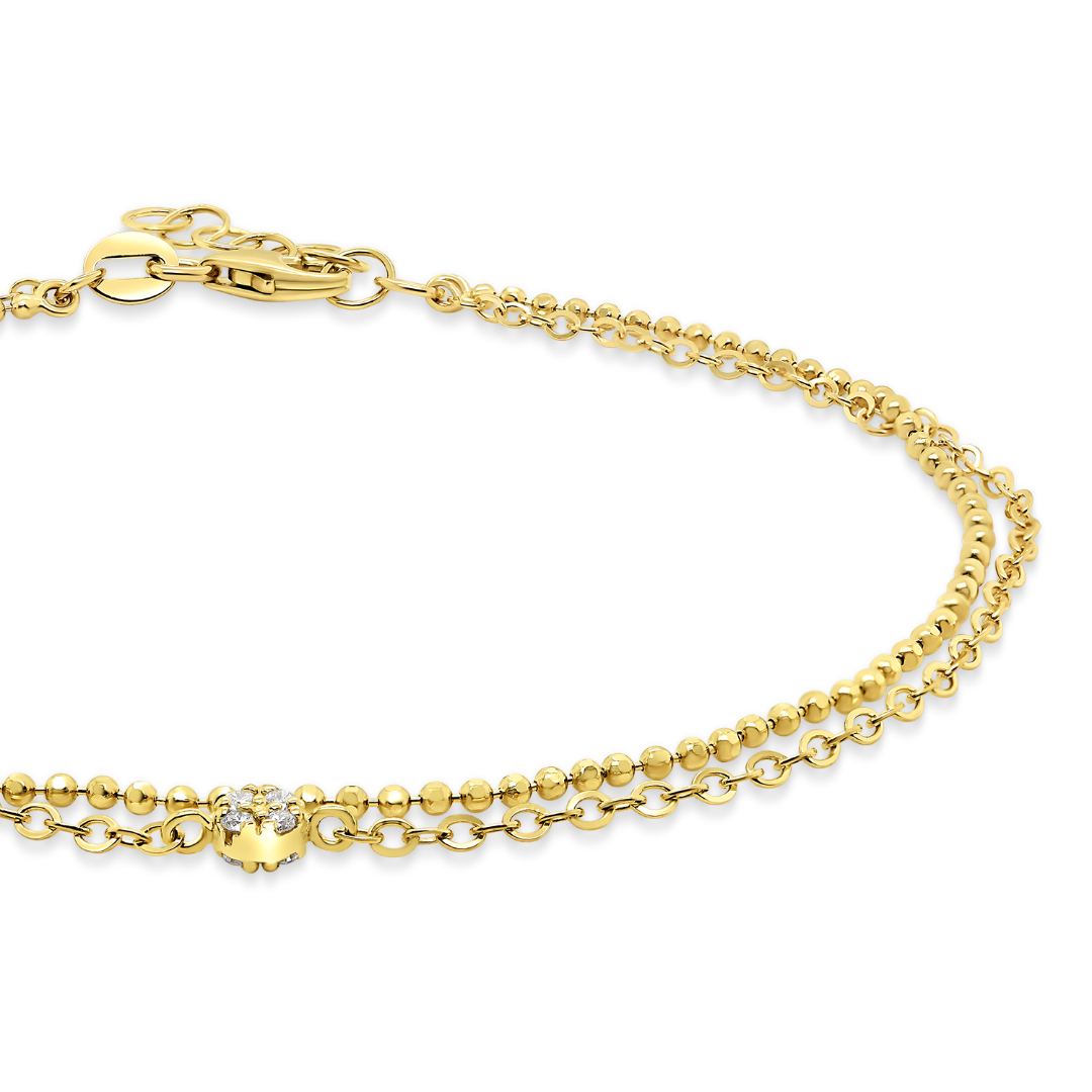 Brățară cu lanț dublu din aur galben de 14K cu Diamante naturale.