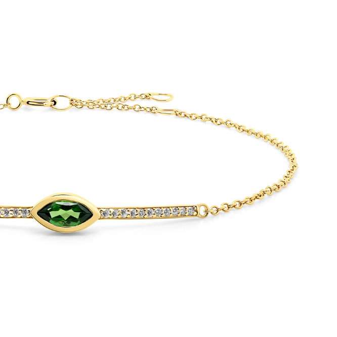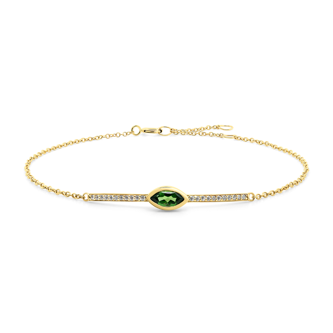 Brățară din aur galben de 18K, cu Diamante Round Brilliant de 0.083ct și un Tsavorit de 0.28ct.