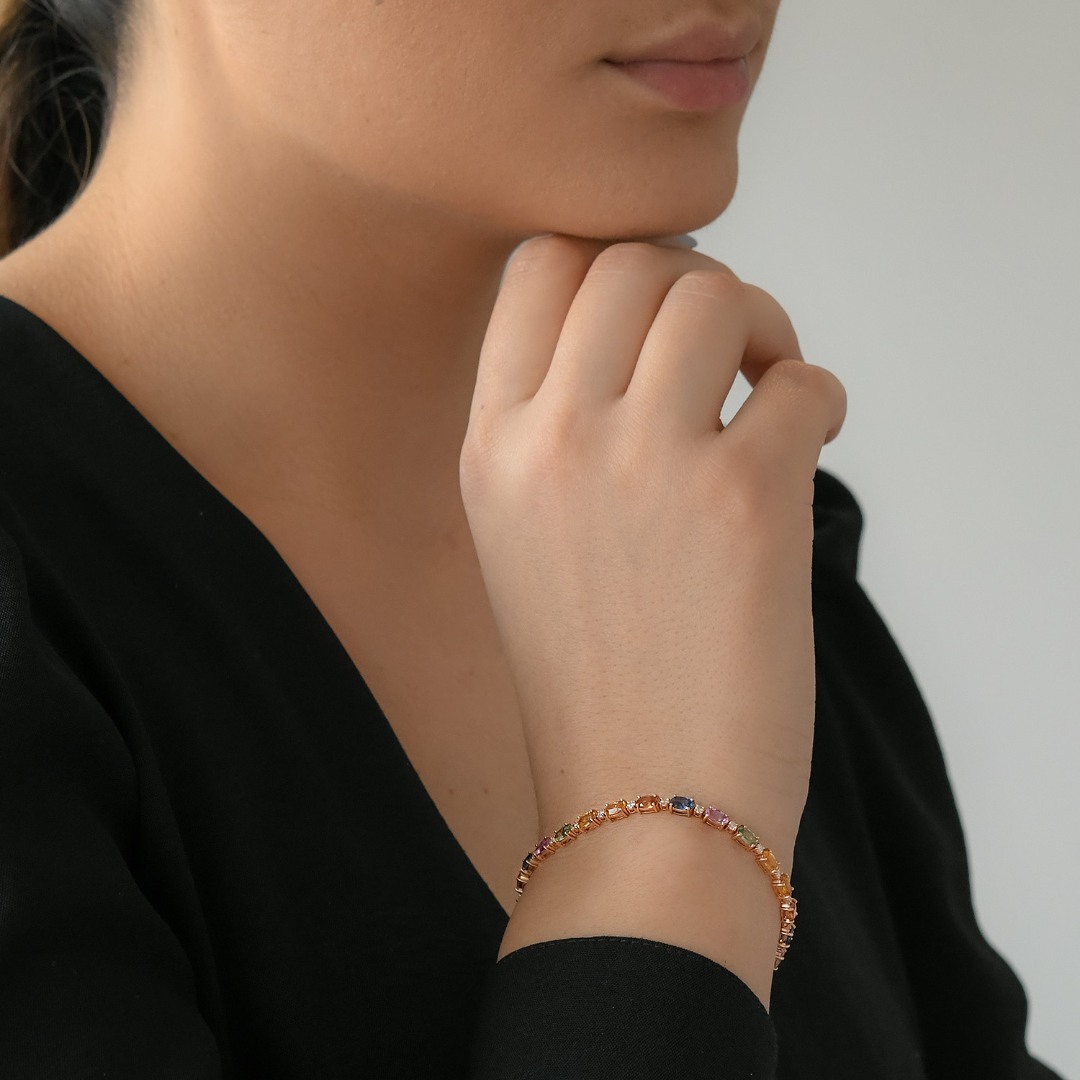 Brățară din aur roz de 18K, încrustată cu Safire Fancy și Diamante naturale.