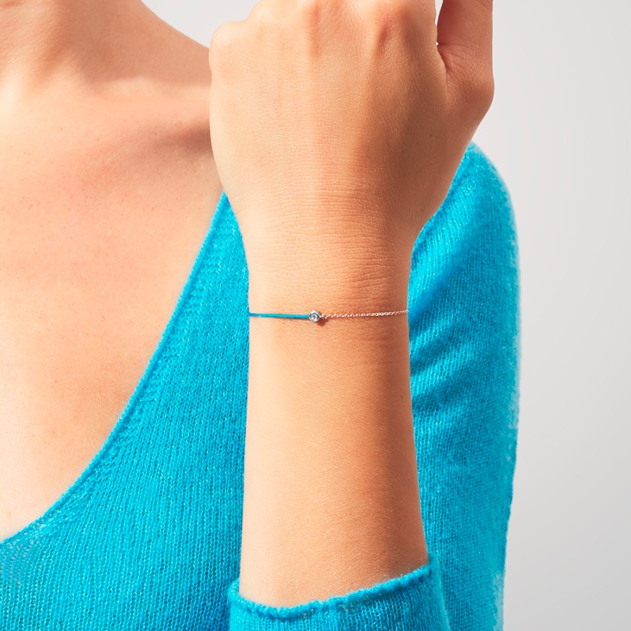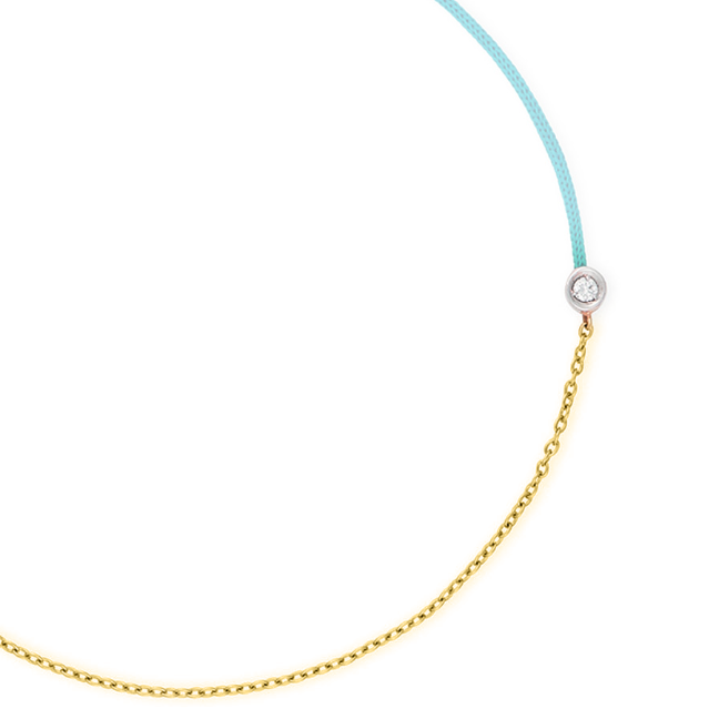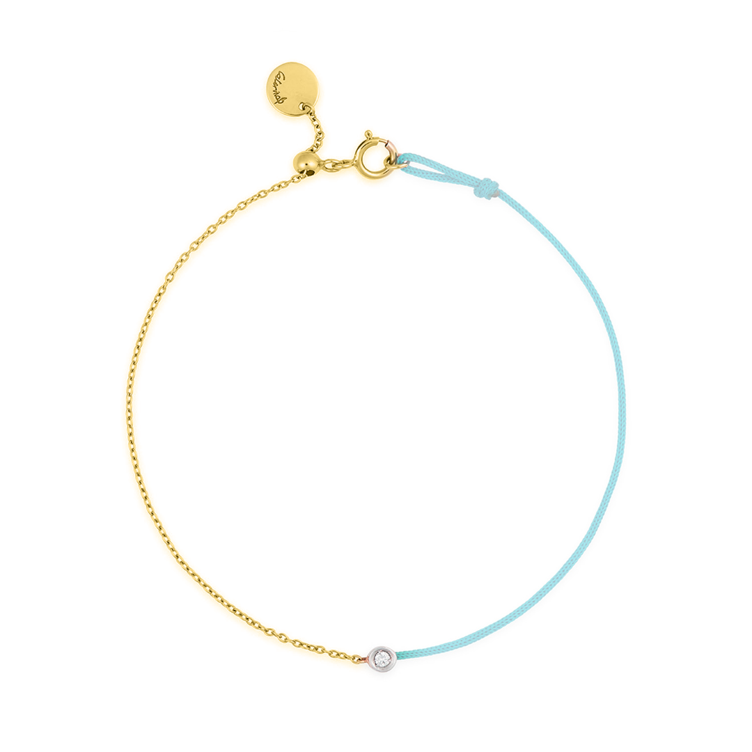 Brățară reglabilă din aur galben de 18K, cu șnur albastru și pandant cu un Diamant natural de 0.02ct.