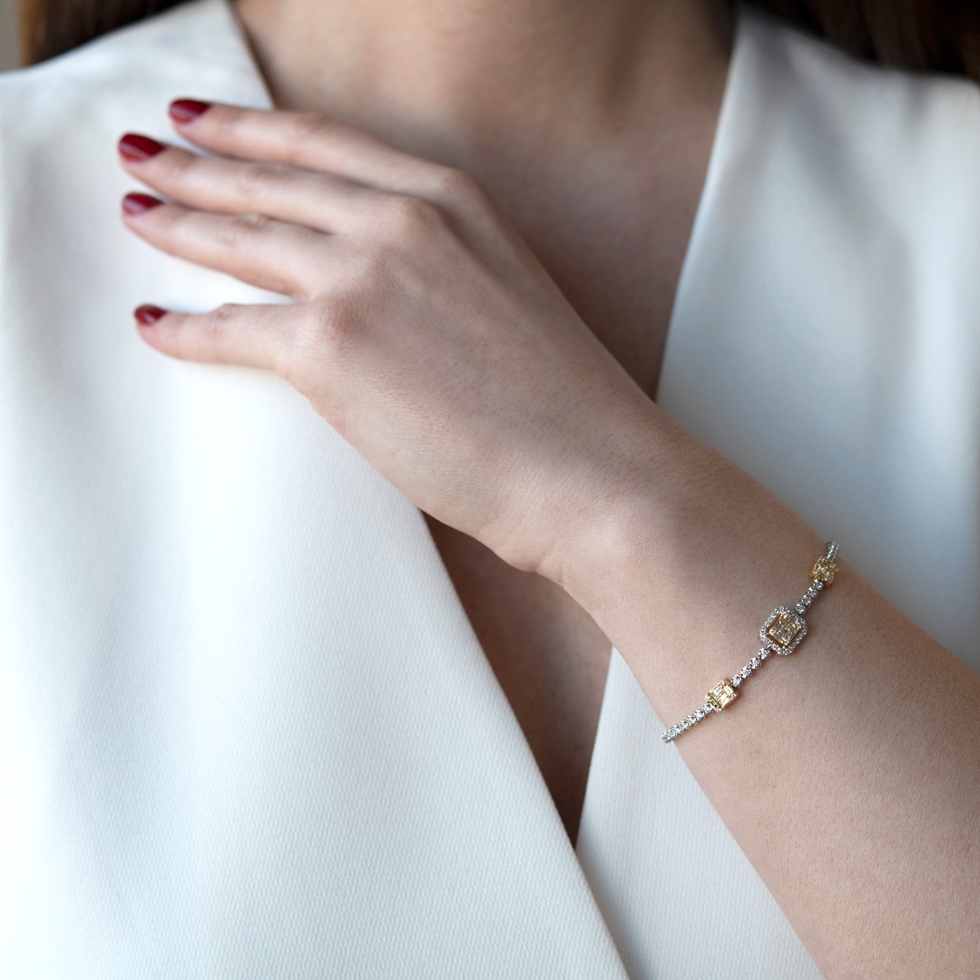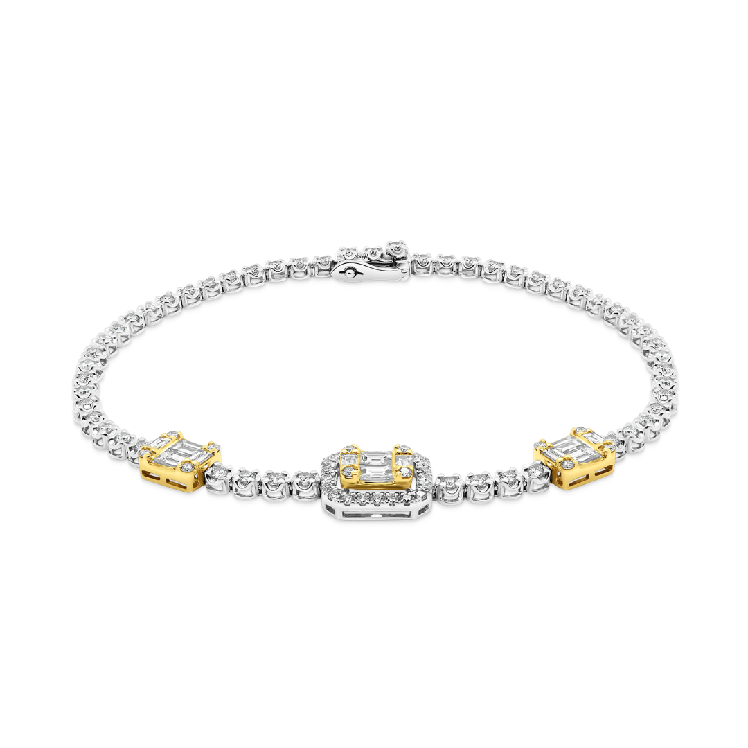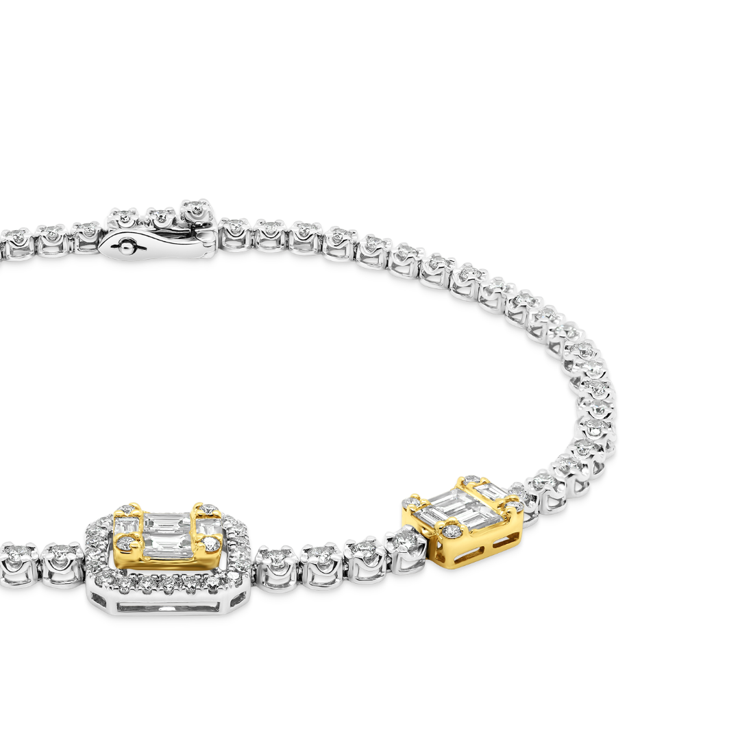 Brățară Tennis din aur alb de 18K cu 98 Diamante naturale Baguette și Round Brilliant.
