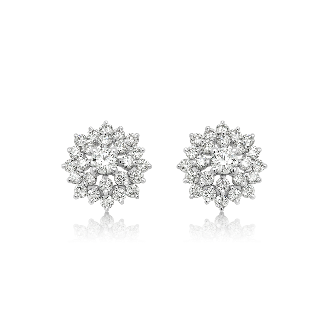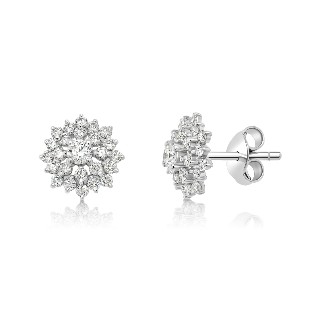 Cercei floare din aur alb de 14K cu Diamante naturale Round Brilliant.