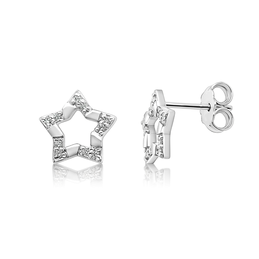 Cercei în formă de stea din aur alb de 14K cu 20 de Diamante naturale Round Brilliant.