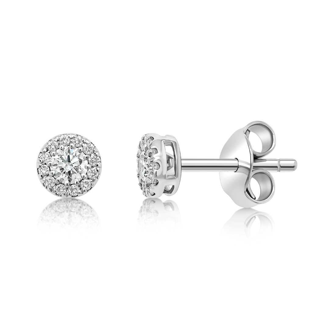 Cercei din aur alb de 14K cu Diamante naturale Round Brilliant.
