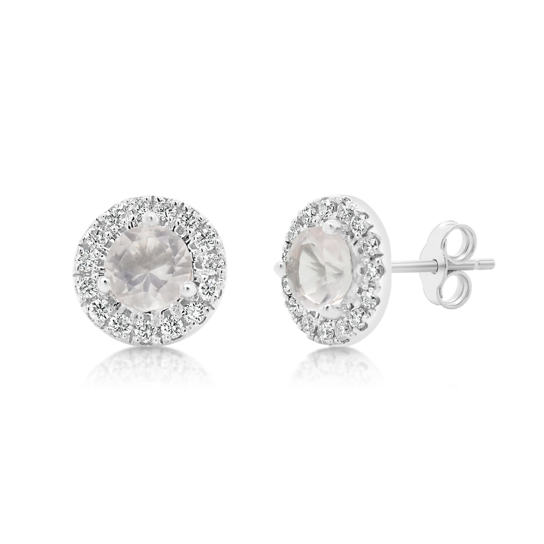 Cercei din aur alb de 18K cu Quartz rose și Diamante naturale.