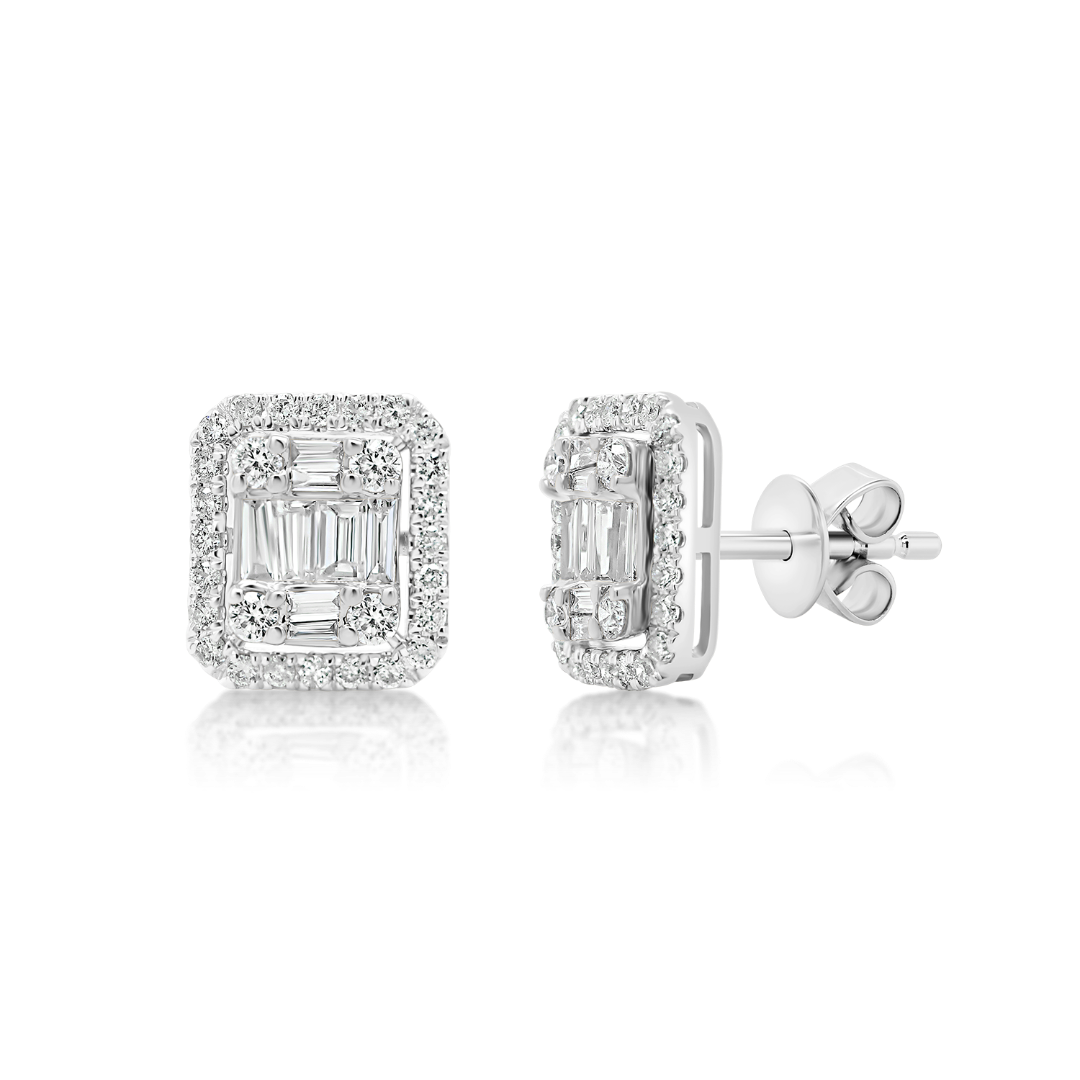 Cercei din aur alb de 18K, încrustați cu 56 de Diamante Round Brilliant și 18 Diamante Baguette.