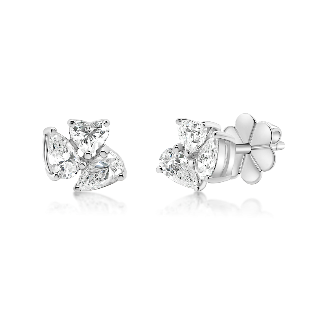 Cercei din aur alb de 18K încrustați cu 2 Diamante Heart cut de 0.26ct. și 4 Diamante Pear cut de 0.52ct.