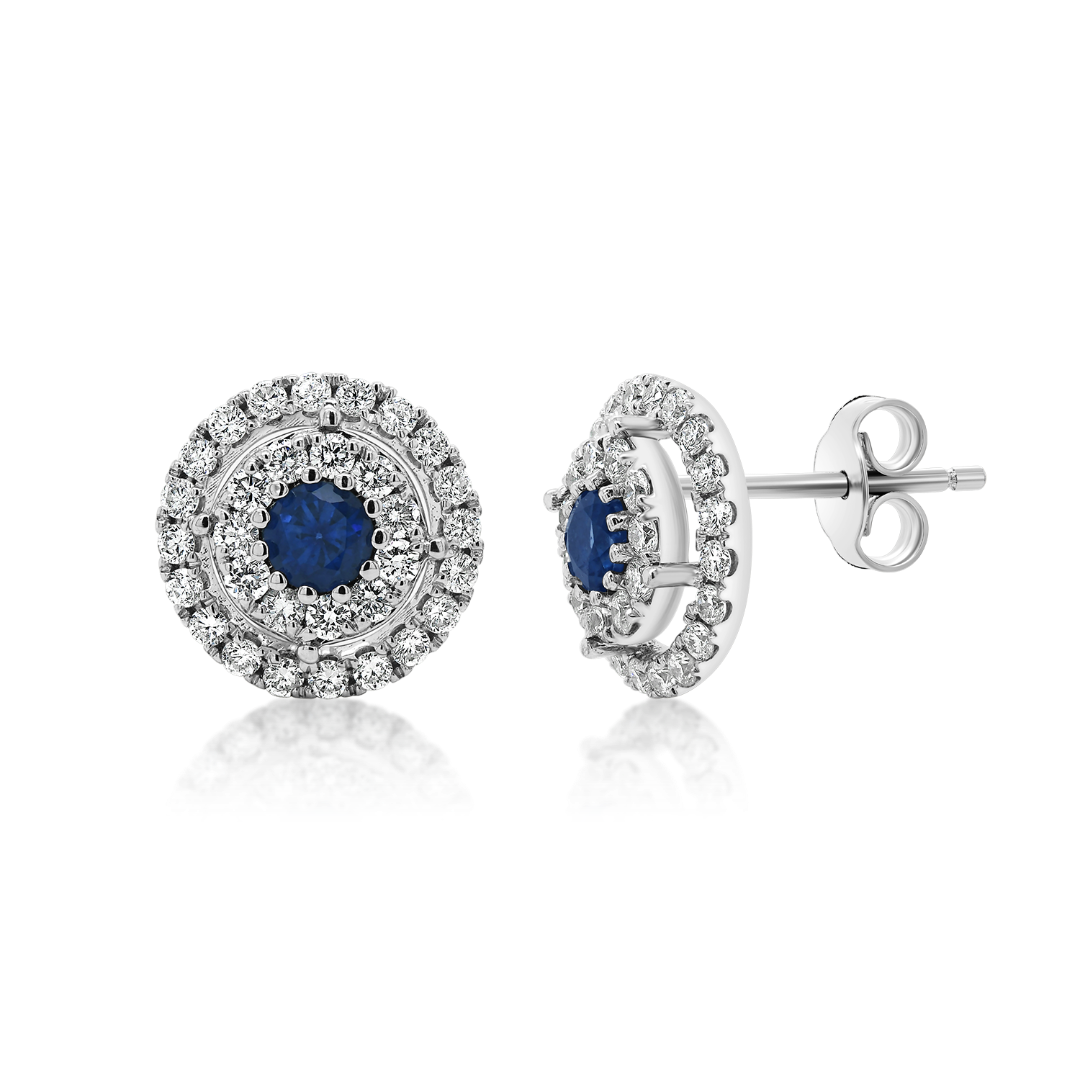Cercei din aur alb de 18K cu Safire albastre și Diamante incolore brilliant cut.