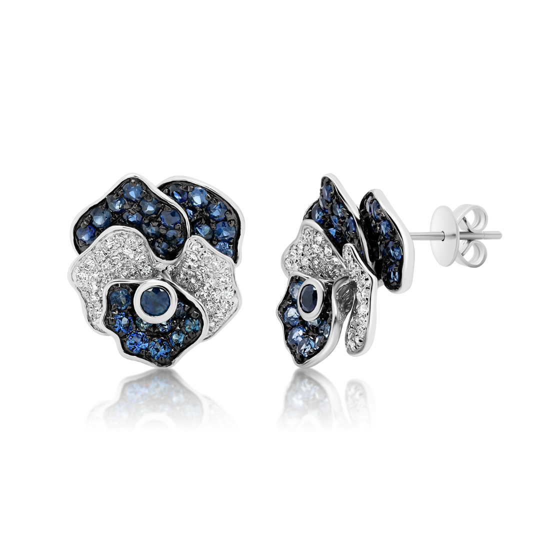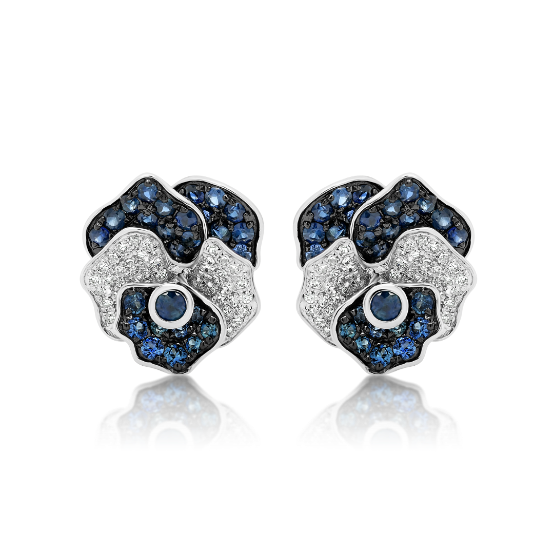 Cercei din aur alb de 18K încrustați cu 62 de Safire albastre de 1.207ct și 102 Diamante Brilliant cut de 0.281ct.