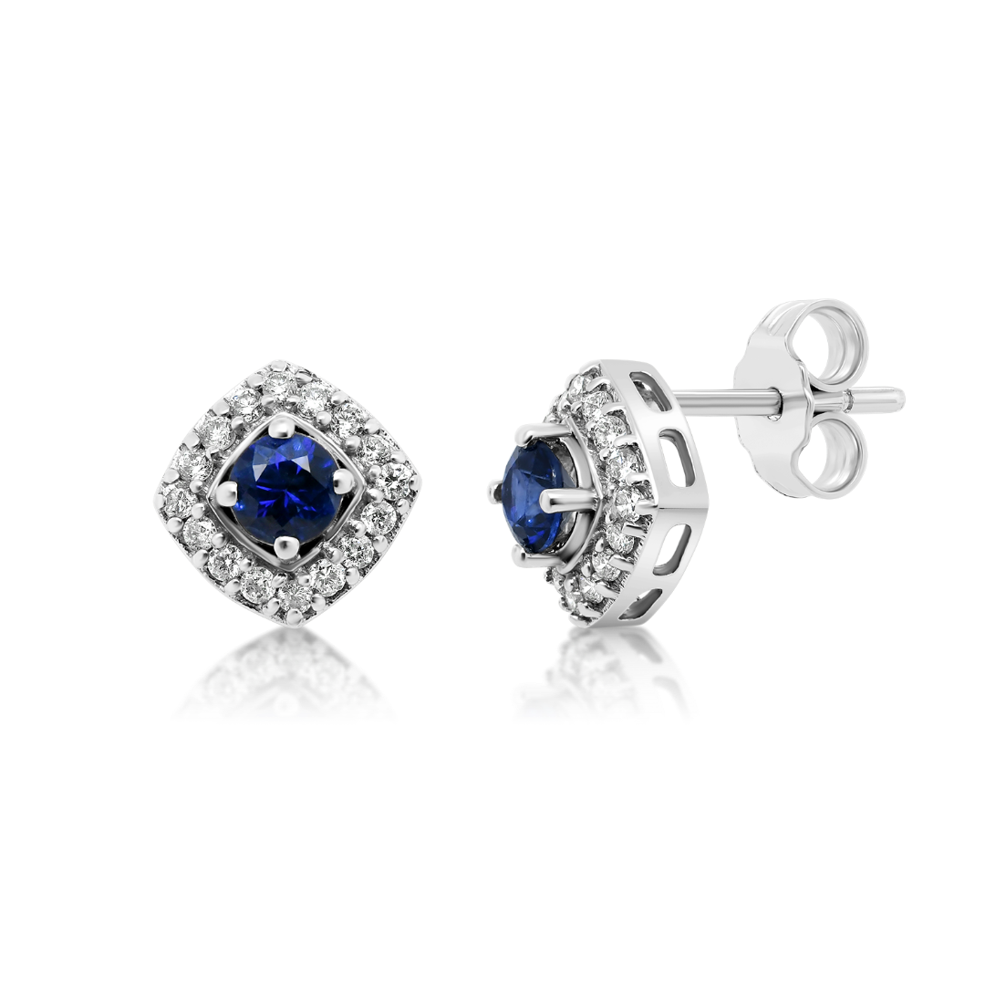 Cercei din aur alb de 18K cu Safire și Diamante, naturale.