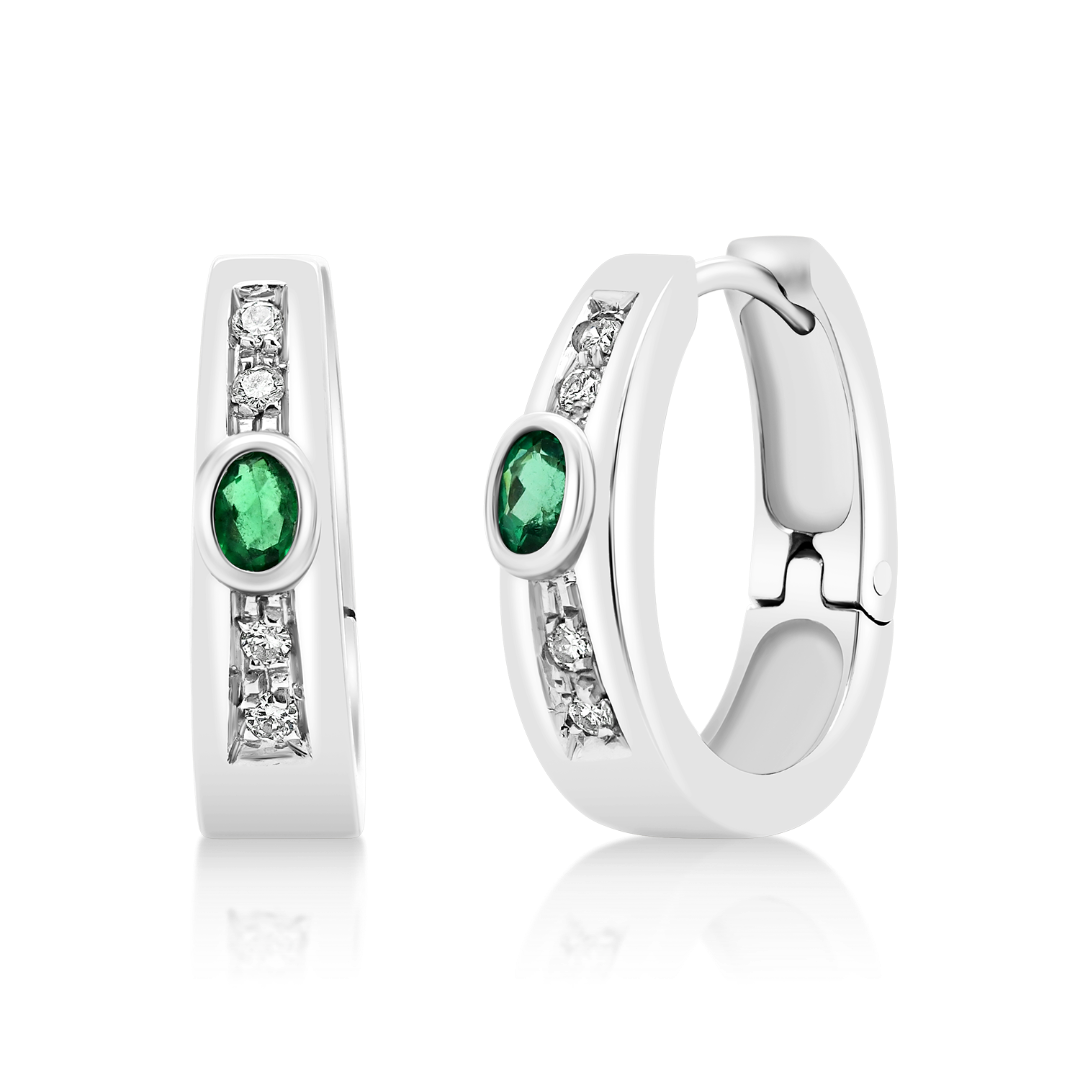 Cercei din aur alb de 18K cu Smaralde de 0.20ct. și Diamante naturale cu o greutate totală de 0.10ct.