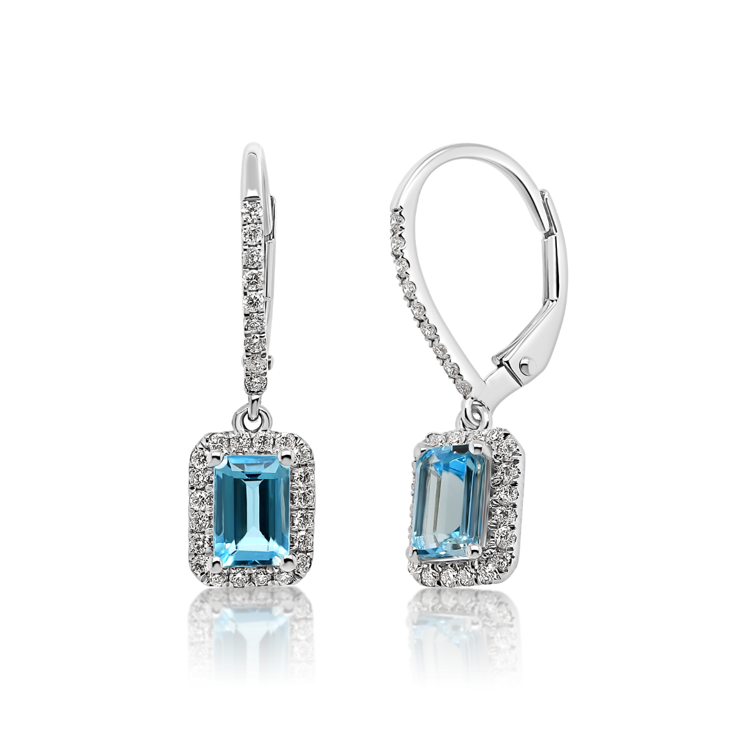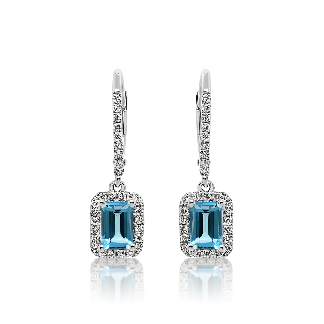 Cercei din aur alb de 18K, cu Swiss Topaz de 1.32ct și 58 de Diamante Round Brilliant de 0.34ct.