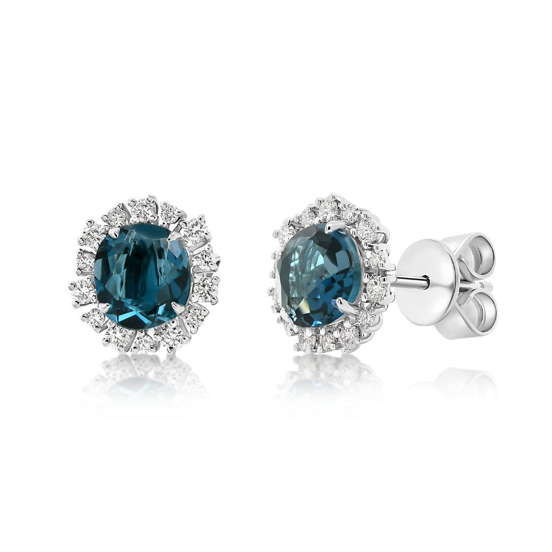 Cercei din aur alb de 18K, cu London Blue Topaz de 1.68ct și 28 de Diamante Round Brilliant de 0.295ct.