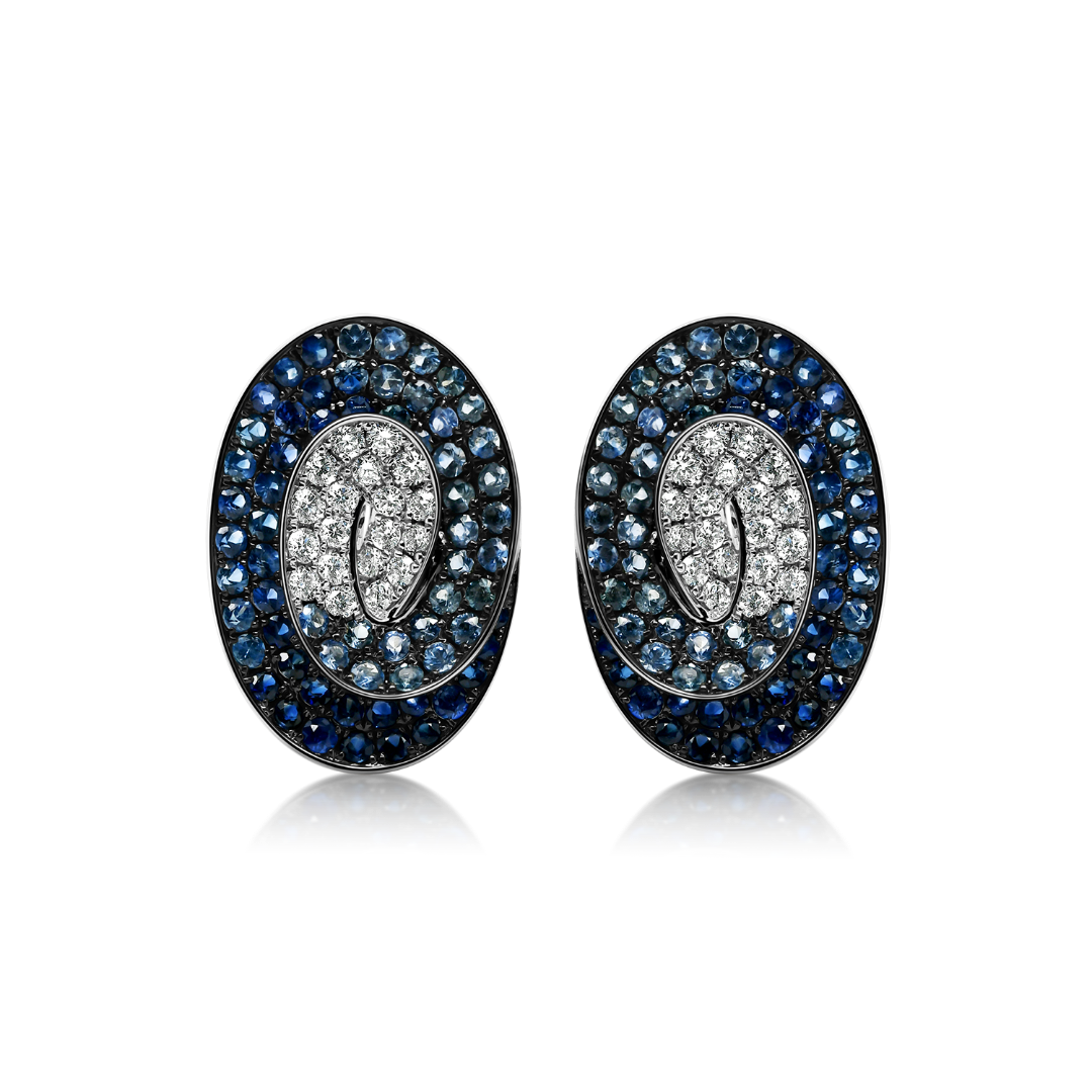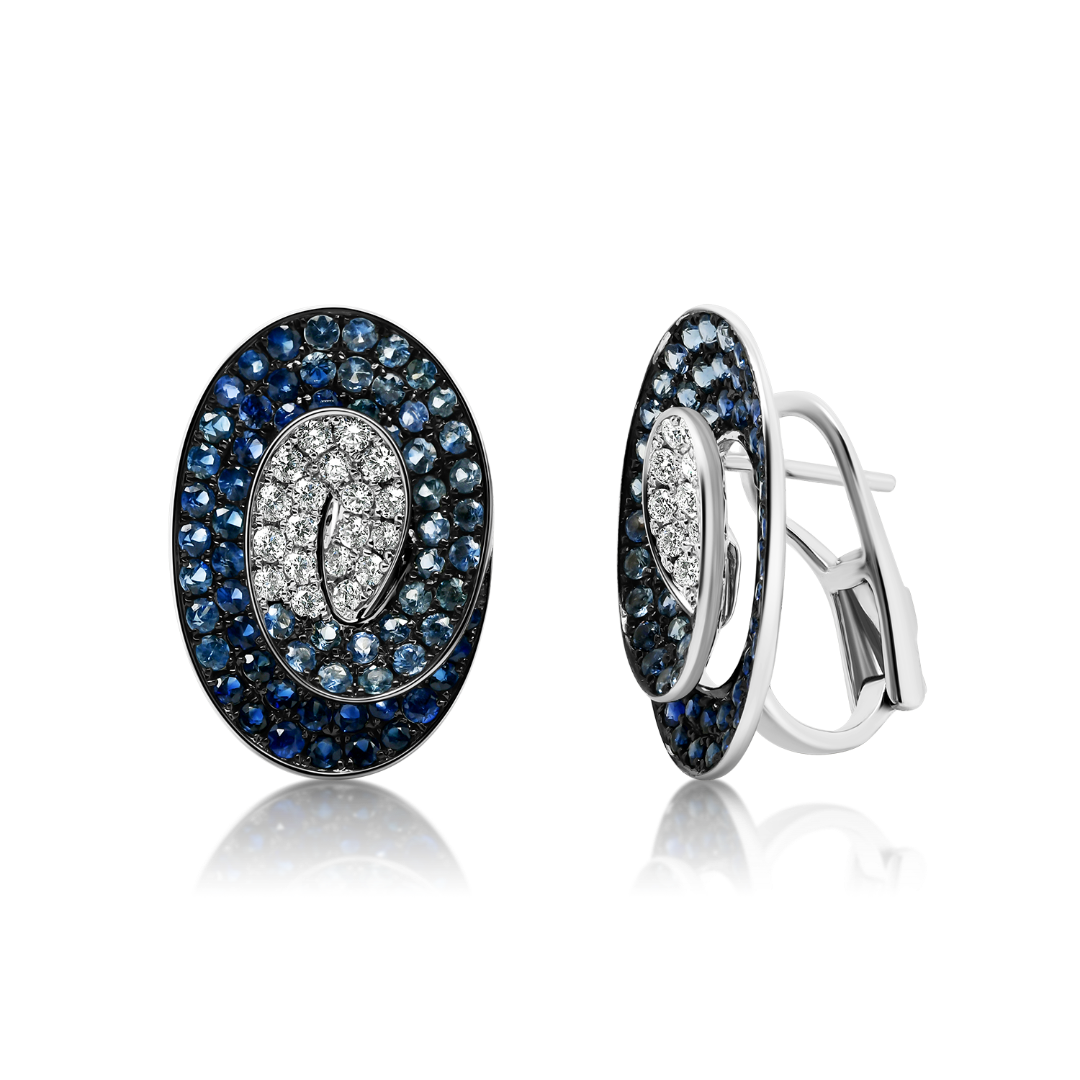 Cercei din aur alb de 18K, încrustați cu 130 de Safire albastre de 2.86ct și 38 de Diamante Brilliant cut de 0.64ct.