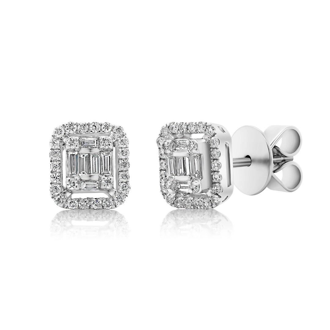 Cercei din aur alb de 18K încrustați cu Diamante naturale Baguette și Round Brilliant, cu o greutate totală de 0.33ct.