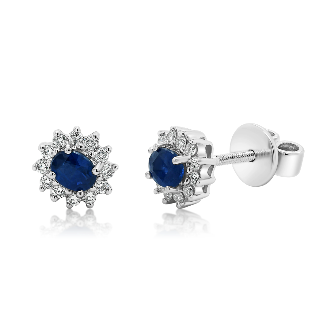 Cercei din aur galben de 18K, cu Diamante naturale de 0.16ct. și două Safire albastre de 0.53ct.