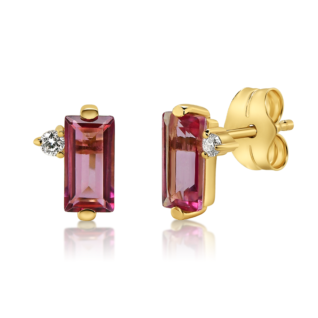 Cercei din aur galben de 14K cu Diamante naturale și Topaze roz.