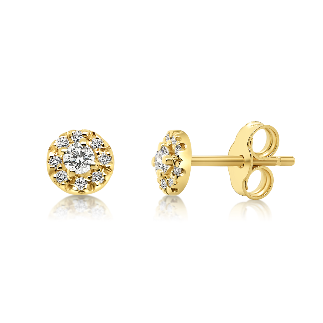 Cercei din aur galben de 14K cu 18 Diamante naturale.