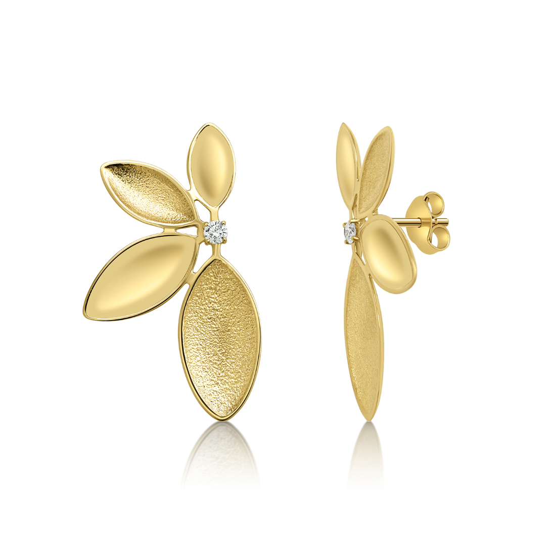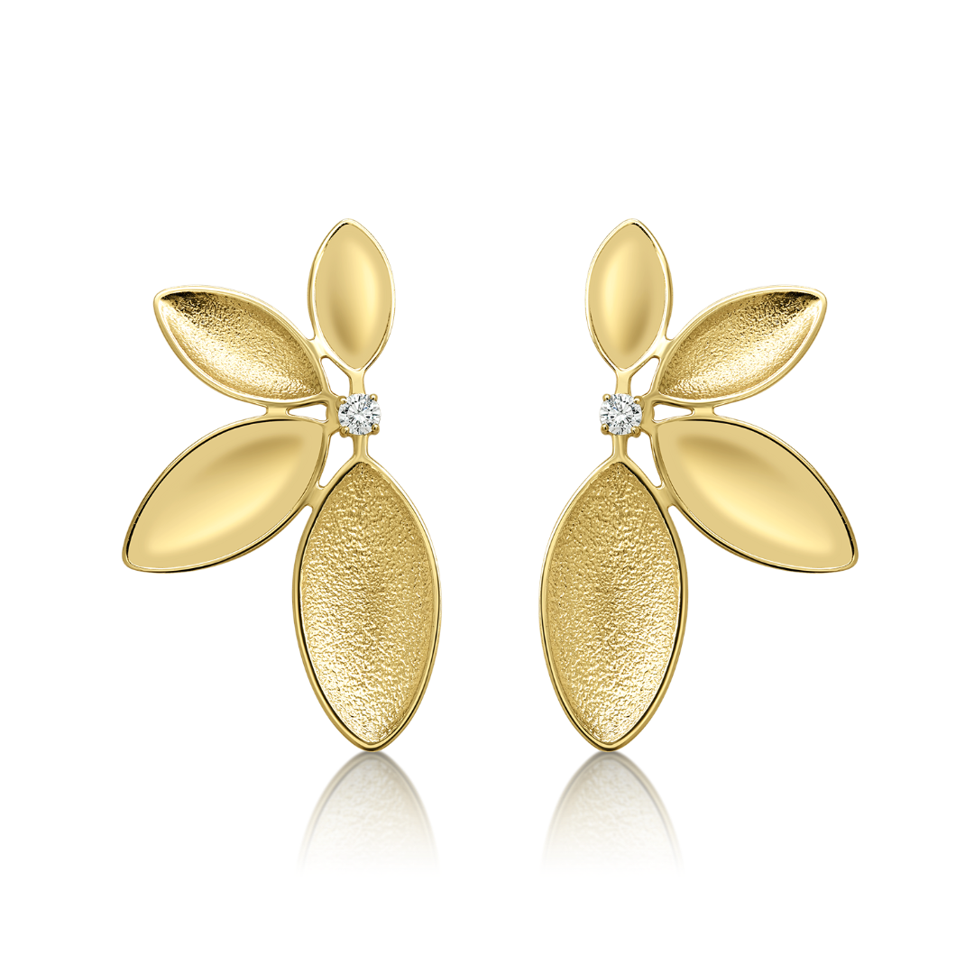 Cercei din aur galben de 14K cu Diamante naturale.