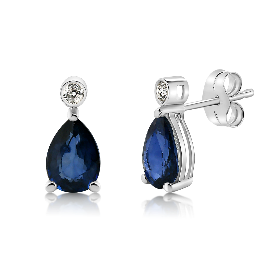 Cercei din aur alb de 14K cu 2 Diamante naturale de 0.05ct și 2 Safire albastre de 1.8ct.