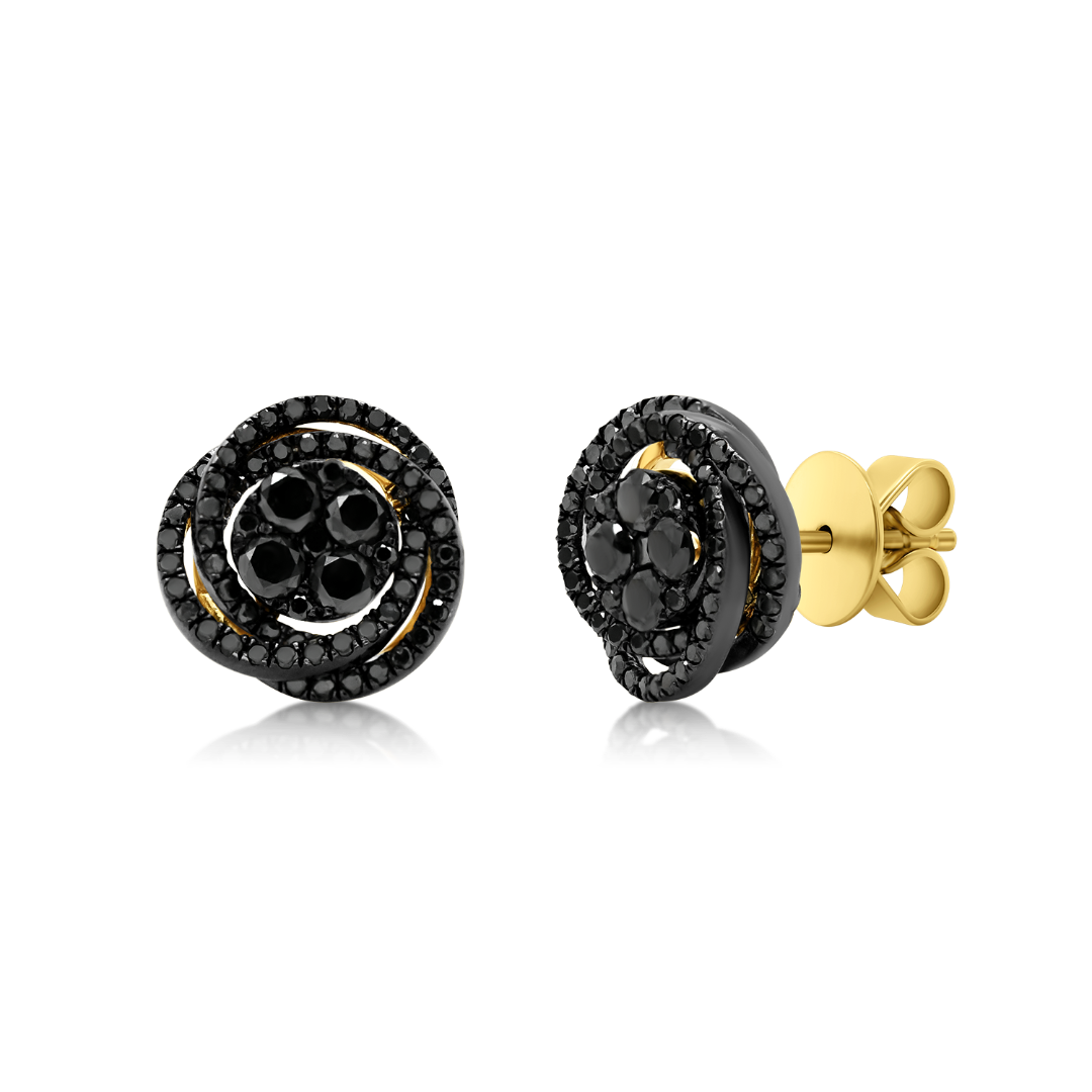 Cercei din aur galben de 18K cu Rodiu negru și Diamante negre naturale.