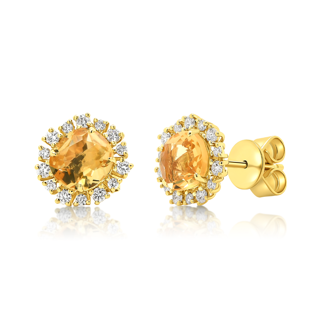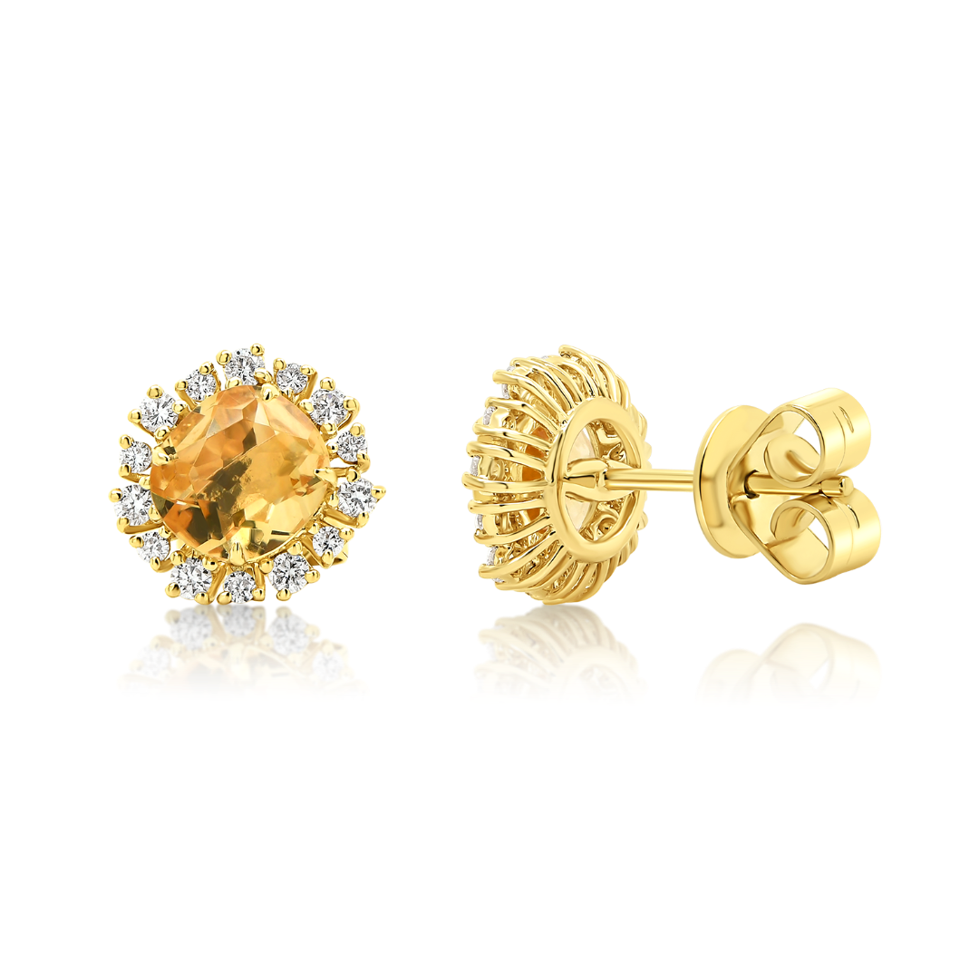 Cercei din aur galben de 18K, cu două Citrine de 1.34ct și 28 de Diamante Round Brilliant de 0.295ct.