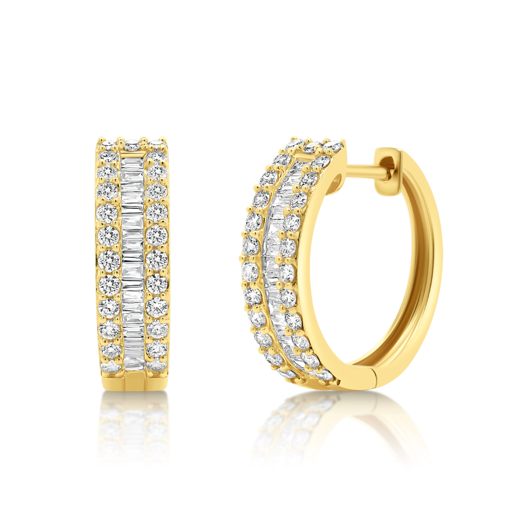 Cercei din aur galben de 18K cu Diamante naturale Round Brilliant și Baguette.