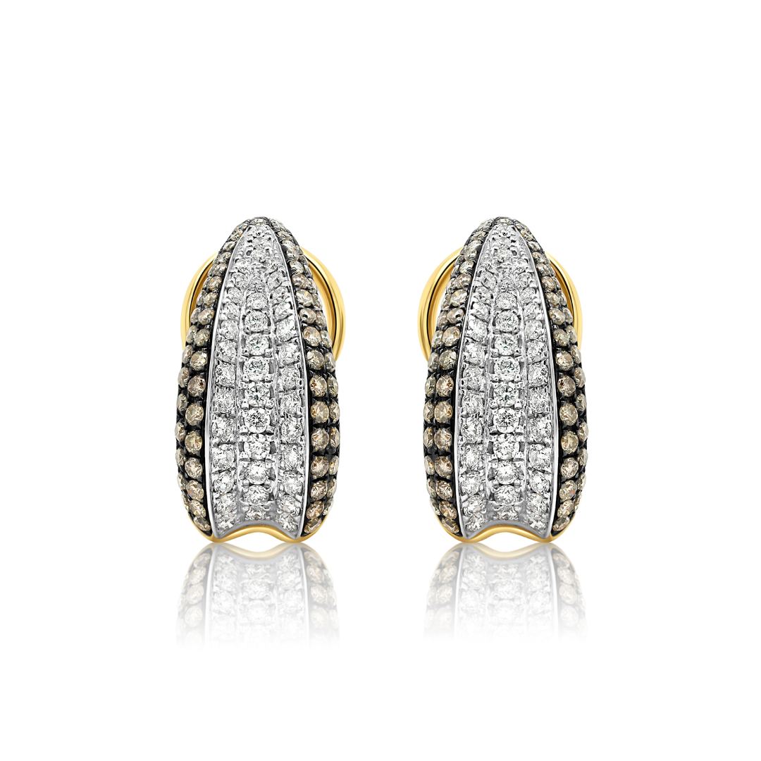 Cercei din aur galben de 18K, cu 78 de Diamante incolore de 0.81ct și 140 de Diamante maro de 1.05ct.