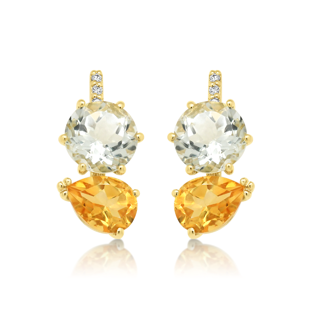 Cercei din aur galben de 18K cu Citrin, Ametist verde și Diamante naturale.
